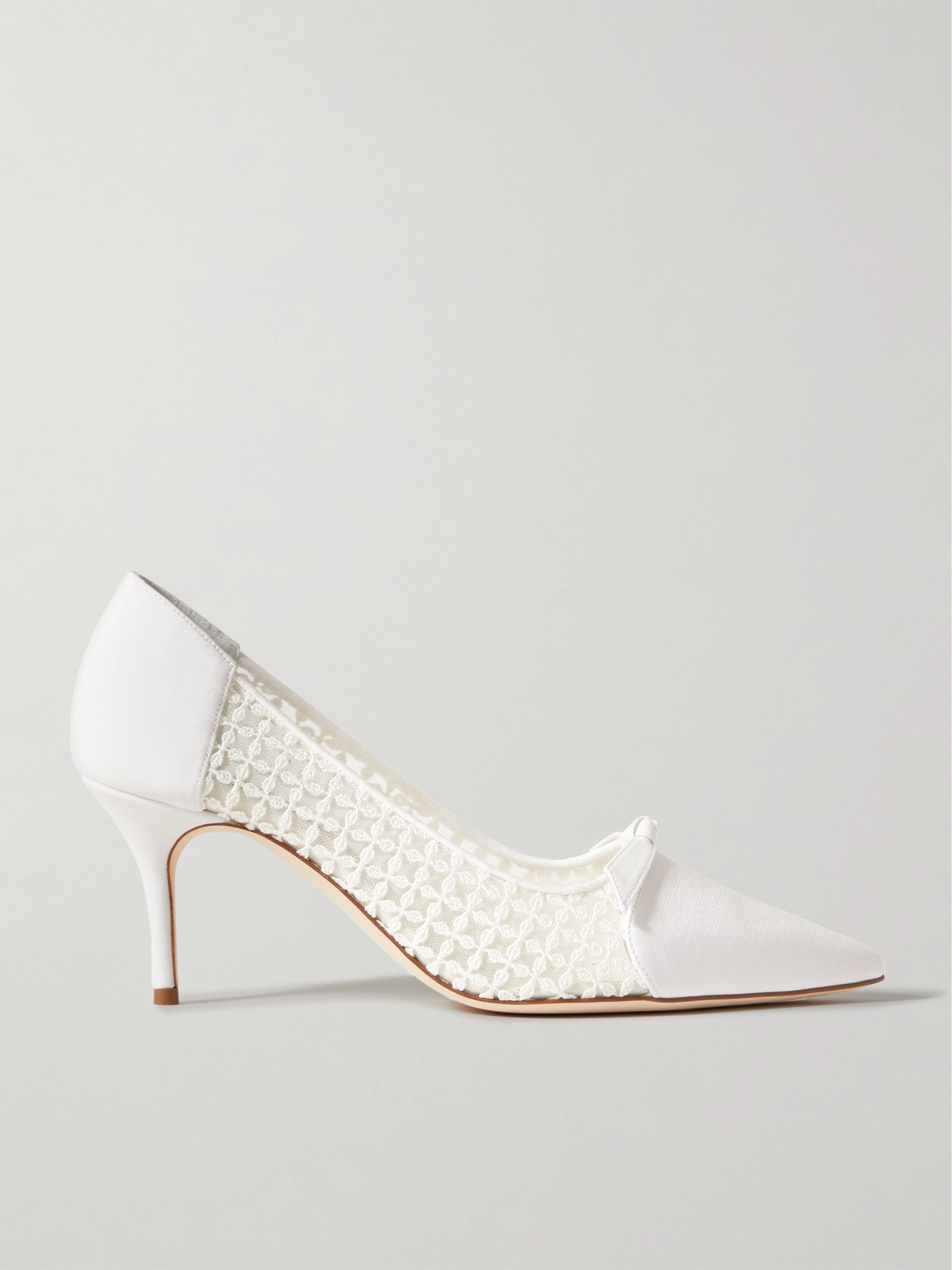 Manolo Blahnik Rinialola 70 Bow-embellished Embroidered Mesh And Crepe De Chine Pumps