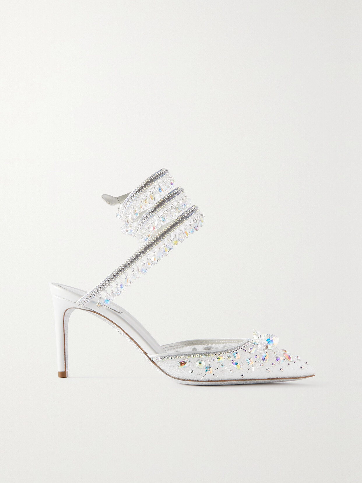 René Caovilla Crystal-embellished Lace And Leather Pumps