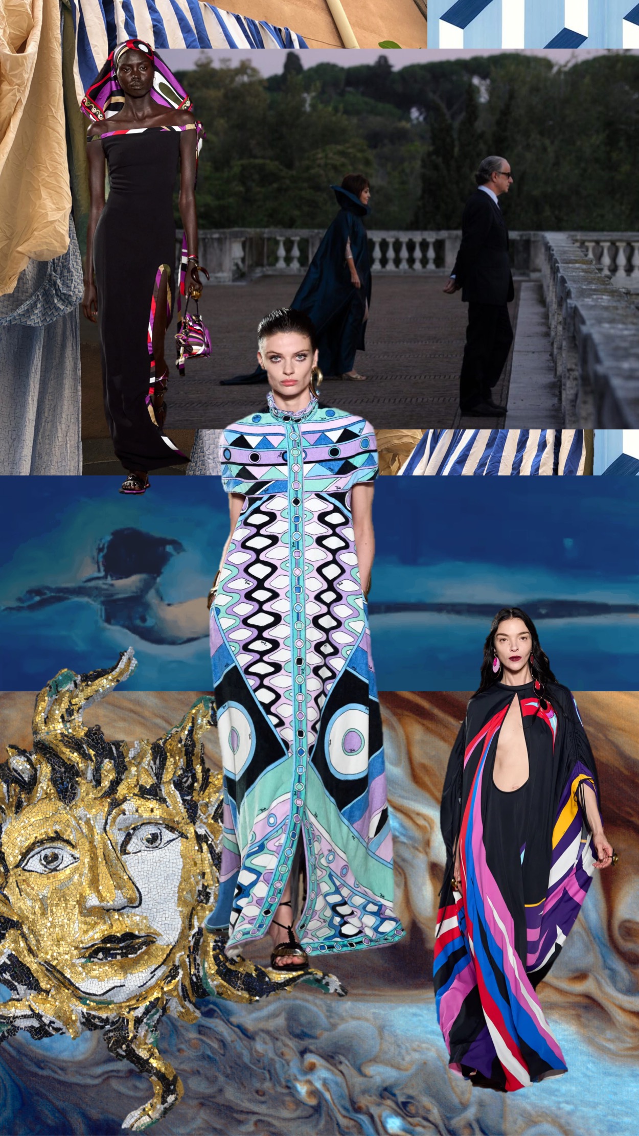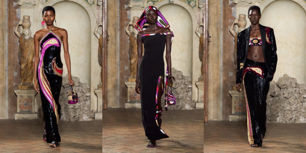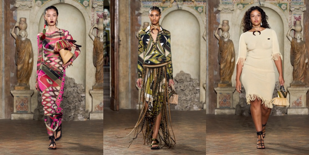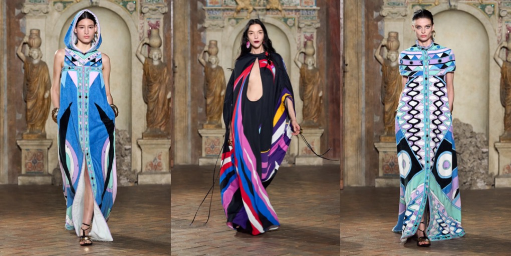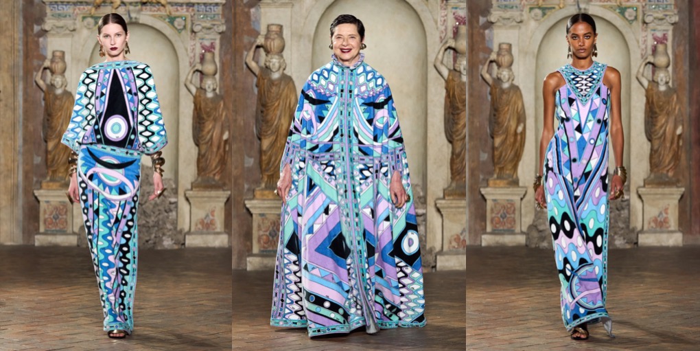 Camille Miceli delivered a bold and joyful Emilio Pucci moment: high-energy runway presentation held at Palazzo Altemps in Rome, opened with a stunning appearance by Christy Turlington and closed with the iconic Italian actress and model Isabella Rossellini. To the tune of Roisin Murphy’s covers of all-time Italian classics, the charismatic designer sent down a contemporary take on the psychedelic Pucci motif. No wonder why the collection was titled “Very Vivara” – after the iconic pattern which was created way back in 1965 and has the same vibrant resonance in 2024. Intertwining the characteristic sumptuousness and the emblematic lightness of the fashion house, shifting between organic and geometric shapes, Miceli offers a certain heartfelt glamour that doesn’t feel forced. Wearing a breezy Pucci caftan-dress, you’re a jet-set goddess, but one cherishing ease and comfort.