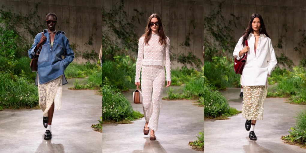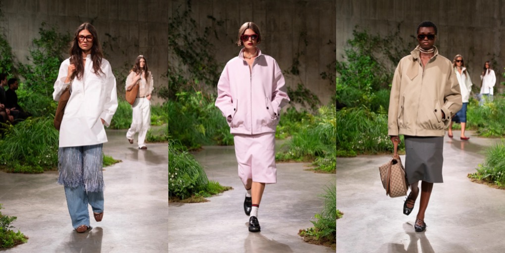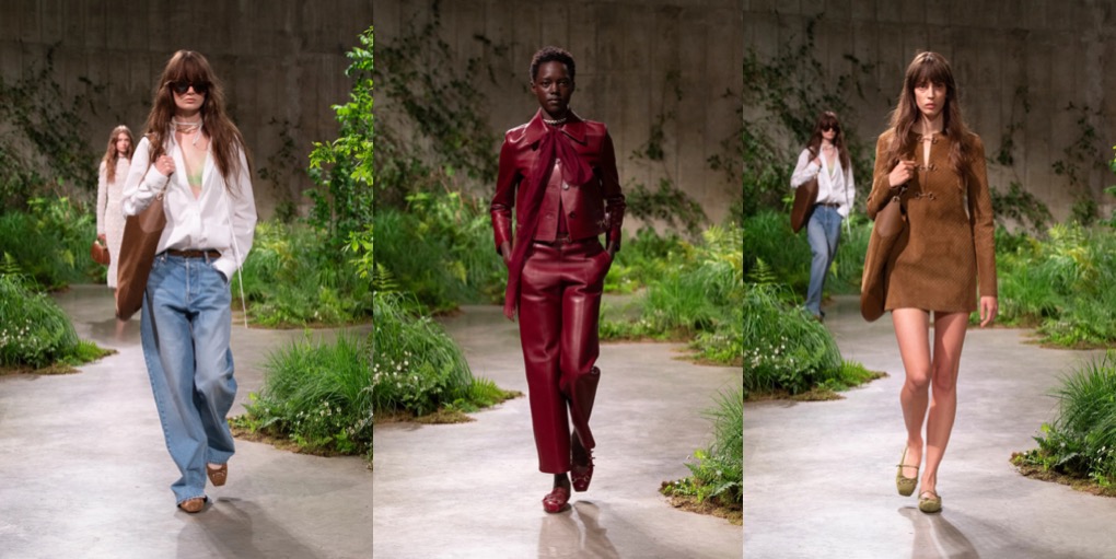 It’s really interesting to observe how badly Sabato De Sarno‘s Gucci tries to force everyone into thinking the brand – in its current situationship – is a “feeling“. You rather catch feelings, especially the good ones, instinctively and spontaneously. Genuinely. Not when somebody signals it in such a straightforward manner. De Sarno’s first resort collection traveled from Milan to London, and it aimed to somehow tell a story that connects the city and the Italian brand. I didn’t grasp that press release blah-blah at all. Just like I didn’t entirely get the point of the location – Tate Modern – and the plant-filled runway setting. If you want to position a brand as an art-loving platform, instead of stripping a London museum to bare walls and place tons of greenery inside, why not focus around some actual artworks that are contextually or emotionally close to the designer?