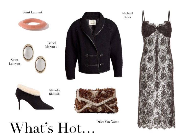 What’s Hot (30.8.24) August 30, 2024August 31, 2024 | Design & Culture by Ed Isabel Marant Djanet Cropped Padded Velvet Jacket Michael Kors Floral Lace Sweetheart Slip Dress Manolo Blahnik Escaria 90 Shearling-trimmed Suede Ankle Boots Saint Laurent Resin Bracelet Saint Laurent Gold-tone And Palladium Clip Earrings Dries Van Noten Bead-embellished Embroidered Velvet Clutch Related