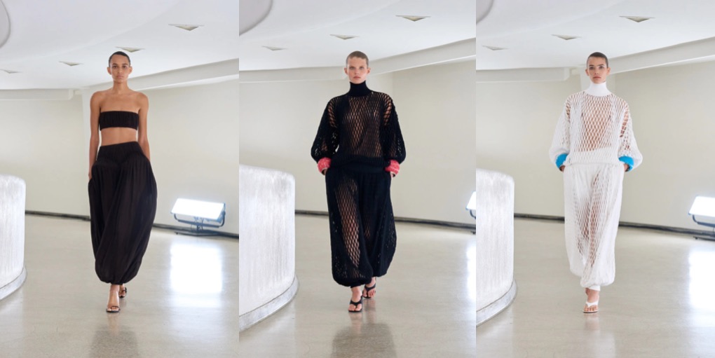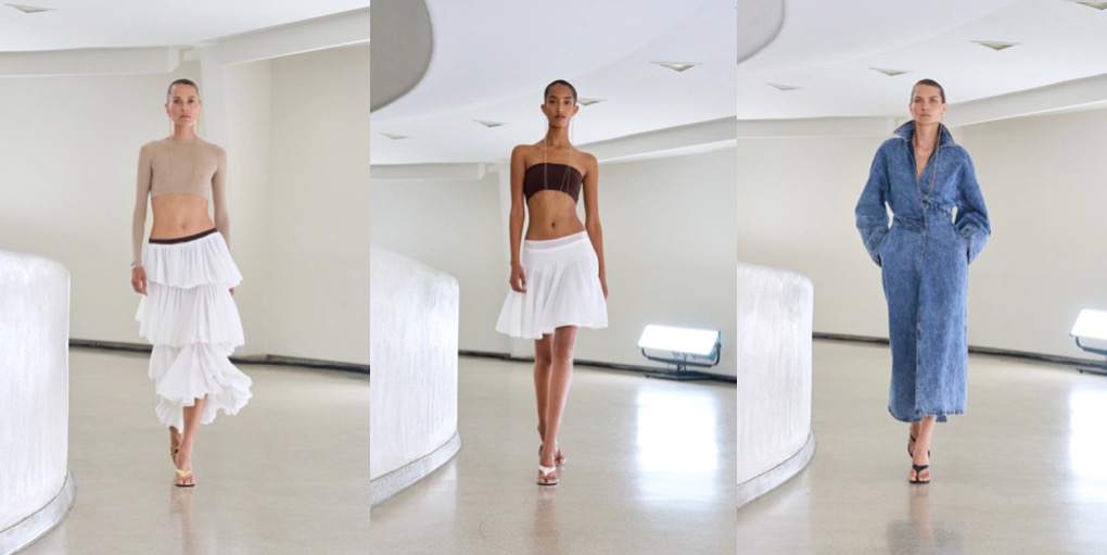 Alaïa was another show in New York that left me somewhat hungry for more. Pieter Mulier‘s took the Parisian maison to Guggenheim, as a contemporary (and very high-gloss) hommage to Azzedine Alaïa’s 1982 show at the Palladium nightclub. The spring-summer 2025 collection referenced a couple of the master’s knock-out designs: think 2001 couture asymmetric draped number hanging on one strap or the cut-out bustiers that became the brand’s signature (Mulier was evidently inspired by the forms of Frank Lloyd Wright-designed building). The Belgian creative director also invited some ideas that were born in New York: bandeaus and haute “sweatpants” were riffs on Halston’s 1970s jerseys, sculpted puffer jackets were obviously inspired by Charles James, one of Alaïa’s favorite designers. There was lightness and apparent ease about this collection that was absolutely luxe in its execution. And it was an experiment for Mulier, who has created a sort of well-tested comfort-zone in Paris when it comes to his sublime shows there. I just wish he dared to push it a bit more than just referencing familiar and pretty well-known codes of both Alaïa and New York fashion.