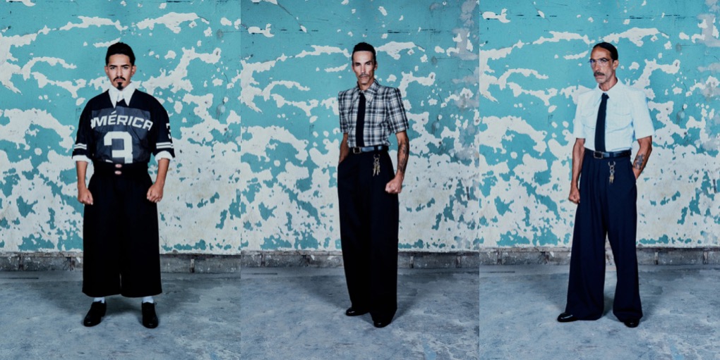 In New York, brands either do clothes for the sake of clothes or create fashion that has a meaning (but then the “clothes-making” part often stumbles). Willy Chavarria is a rare example of a designer who does both seamlessly, creating garments that are amazingly tailored but also give you real food for thought. In his spring-summer 2025 fashion show, the models walked out, in a single file, with the American flag as the monumental backdrop. What came across was a voluminous yet exact silhouette that was a callback to the uniforms of the American working class – hotel workers, concierges, construction people, foremen. And so there were balloon sleeves on classic zip-up jackets, tonal shirt and tie combos, cotton duck work fabric turned into tailored Victorian jackets with princess sleeves or baggy cargo skirts, and really good denim pieces . Many of the looks were accessorized with a set of keys – and a little crucifix – dangling from a belt loop. Within the context of the show it seemed like a plea for America – or rather “América“, as the collection was titled – to be more like the promised land everyone imagines it to be. “This [season] is all about power to the people,” Chavarría said. “It’s this country through the voice of the immigrants, and the people who make this motherfucker run.”