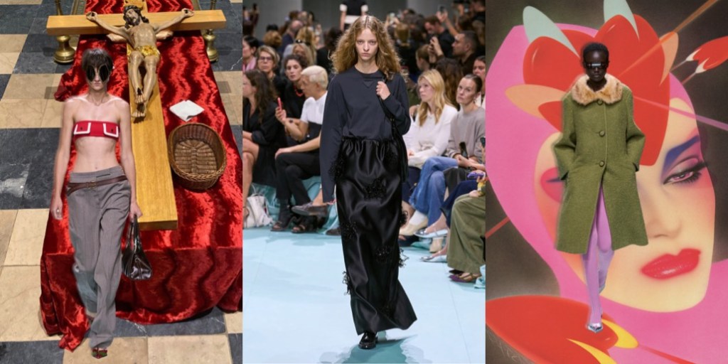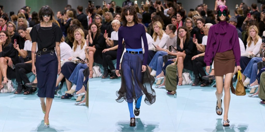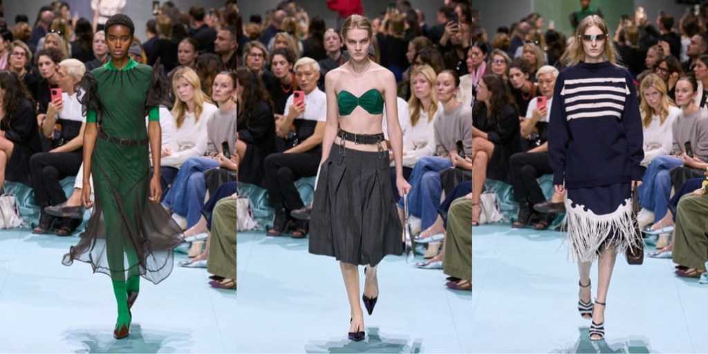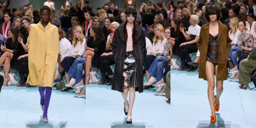 Back in the 90s, Miuccia Prada introduced “ugly chic“, a style so wildly anti-fashion it polarized the entire fashion industry. Yesterday, together with her creative partner Raf Simons, Prada presented a collection so notorious, bizarre and “wrong” that one can either hate-hate it or hate-love it. I’m grateful to both of them for showing a collection that sparked true dismay and confusion – finally, fashion that doesn’t just deliver momentary visual satisfaction or, at worse, lack of any impression. Like a remix of Prada’s greatest hits seen through the lens of a teen who’s living a “Brat” summer 365 days in a year (and probably loves acid), the tackiness, ill-fittingness and clumsiness of this collection reaches perverse levels. So perverse, you feel a kinky affection to it. Yes, contemporary fashion can still make waves, edge the internet so sharply it will spill venomous hate in response, and leave the viewers electrified – with unhinged ecstasy or absolute frustration. Prada and Simons are still capable of shaking the status quo of aesthetics. This is “ugly chic, extreme“.