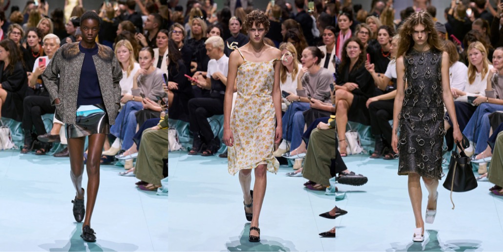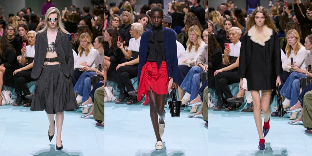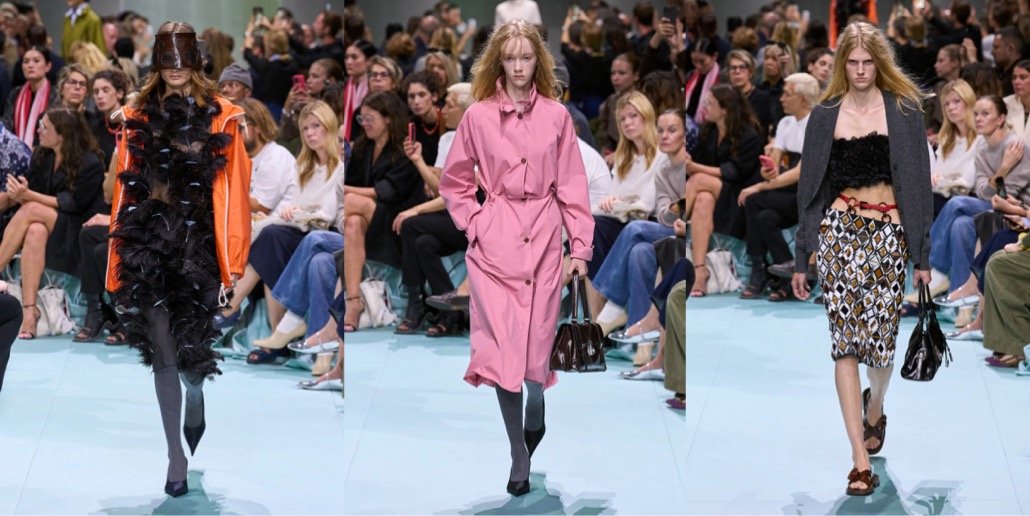 Back in the 90s, Miuccia Prada introduced “ugly chic“, a style so wildly anti-fashion it polarized the entire fashion industry. Yesterday, together with her creative partner Raf Simons, Prada presented a collection so notorious, bizarre and “wrong” that one can either hate-hate it or hate-love it. I’m grateful to both of them for showing a collection that sparked true dismay and confusion – finally, fashion that doesn’t just deliver momentary visual satisfaction or, at worse, lack of any impression. Like a remix of Prada’s greatest hits seen through the lens of a teen who’s living a “Brat” summer 365 days in a year (and probably loves acid), the tackiness, ill-fittingness and clumsiness of this collection reaches perverse levels. So perverse, you feel a kinky affection to it. Yes, contemporary fashion can still make waves, edge the internet so sharply it will spill venomous hate in response, and leave the viewers electrified – with unhinged ecstasy or absolute frustration. Prada and Simons are still capable of shaking the status quo of aesthetics. This is “ugly chic, extreme“.