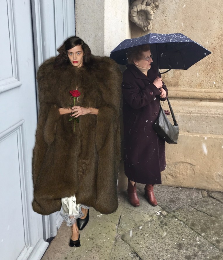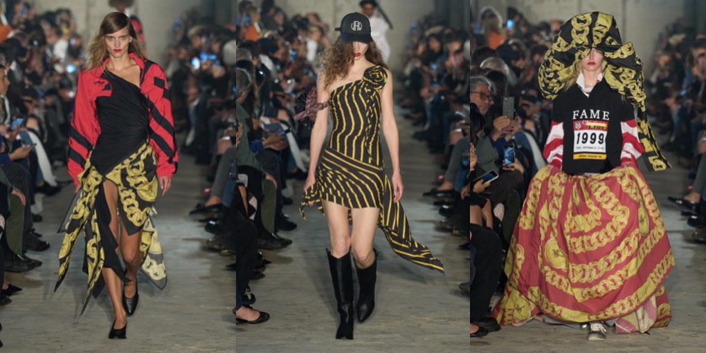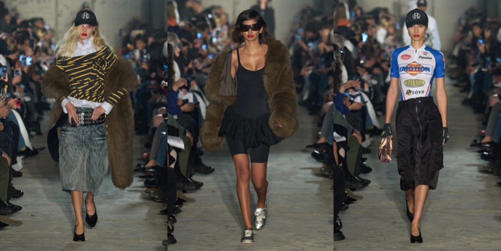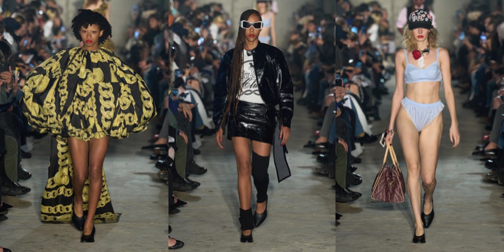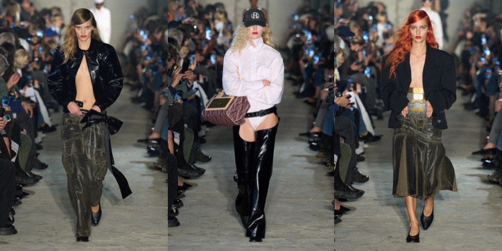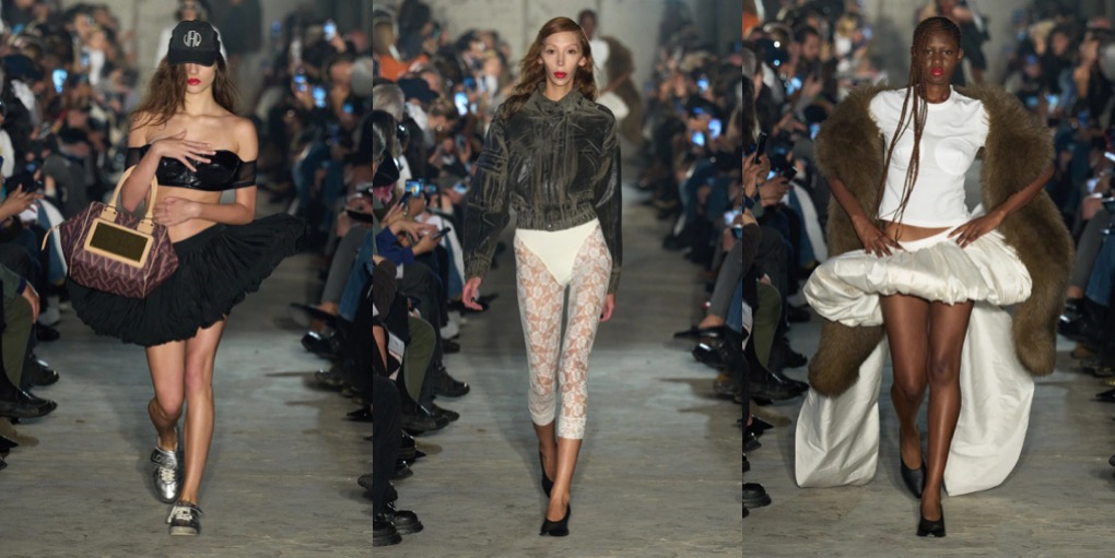 Vaquera opened Paris Fashion Week with bonkers attitude – but one that is also commercially viable. “We’re still very punk in our roots,” said Bryn Taubensee, “but we’re asking ourselves, how can we also make it easy for people to understand and wear, and easy enough for us to survive?” Patric DiCaprio, the other half of Vaquera’s heart, put it more bluntly: “Shooting ourselves in the foot isn’t really where we see the future for our lives and this brand.” That’s why the spring-summer 2025 collection is all about Vaquera essentials – black bubble miniskirt with built-in bike shorts, bullet-bra tops and jersey tees with logos – with a provocateur twist. The XXL faux-fur coat is a joyous delight, just like the puffy ball-skirt in a kitschy, vintage-y chain print, styled with a monumental cloud-shaped. But there’s nothing whimsy about Vaquera, even their eveningwear as the New York-based duo styles it with over-sized rugby shirts and well-worn trainers.