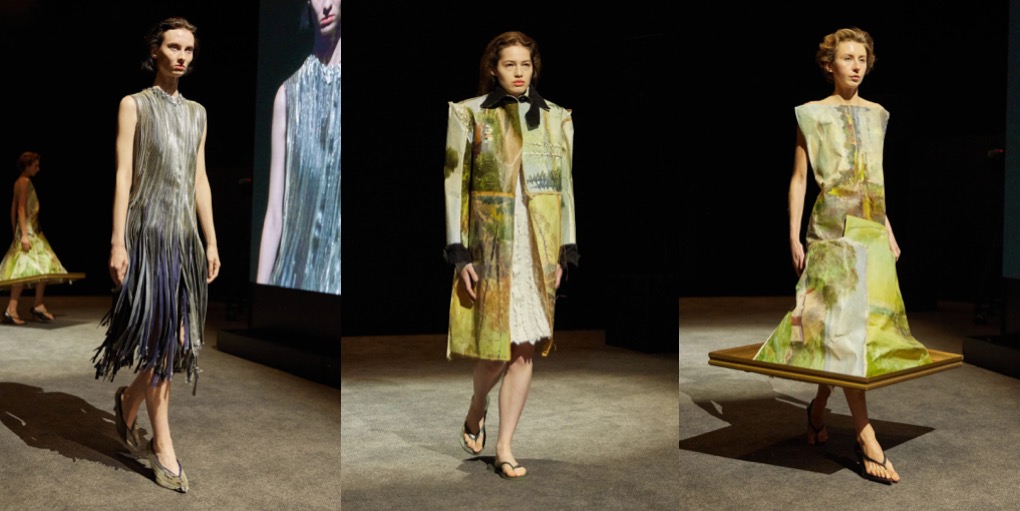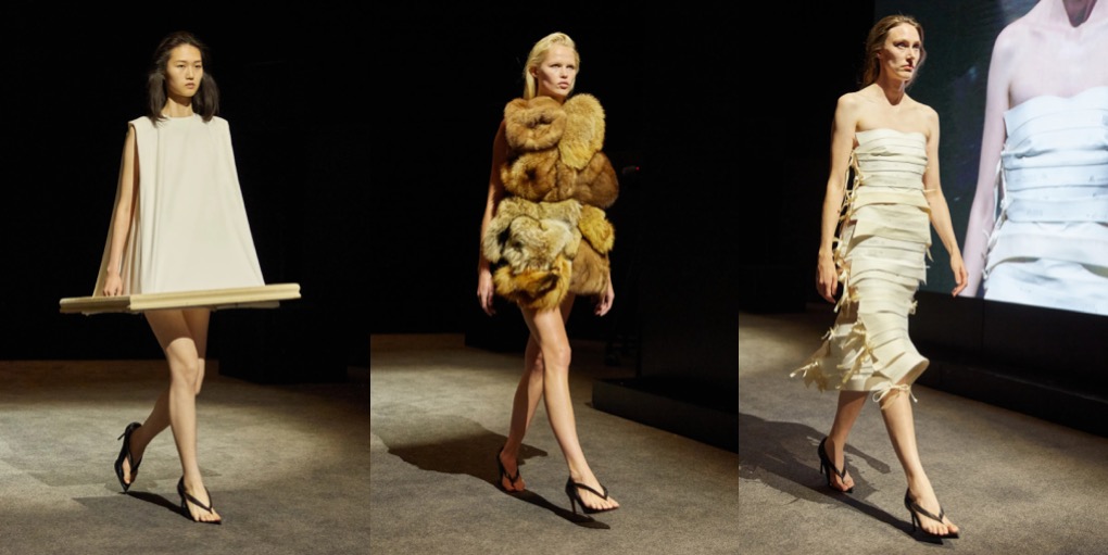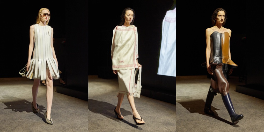 Ellen Hodakova Larson won the prestigious LVMH Prize earlier this month. This, plus Cate Blanchett’s red carpet endorsement, means growing buzz around her eponymous brand. The spring-summer 2025 collection worked as a primer to those new to the Hodakova world, and held plenty of interest for those who were better acquainted with it. Her haute upcycling approach to fashion is based on the make-do and mend values she grew up with. This season the designer took a walk down memory lane. “For me it’s been a dive into warmth and feeling proud about where you come from,” she said. “I find so much comfort in going back in memories… and my memories are in objects, so it’s more about smells, images, pieces—all of the physical things.” Because of the materials they are made of, deadtock, vintage, and salvage, Hodakova’s designs evoke the past. They carry tales, but neither the designer nor her garments are retro, rather Larsson’s aim is, she explained, “to be present all the time.” Hodakova has a Martin Margiela manner of approaching her craft: just as he made vests out gloves, she uses boots to construct a dress, in a surreal yet gritty, rough way. In her eyes nacre buttons, plastic eyeglass lenses, and zippers are jewels and discarded status symbols; like démodé fur hats can become coquettish dresses. The humanist concept of turn to materiality has been the designer’s main focus in her work, but this season she said she wanted to focus more on silhouettes, and did so with some face-covering column dresses, done her way. Hodakova is a beautiful work in progress.