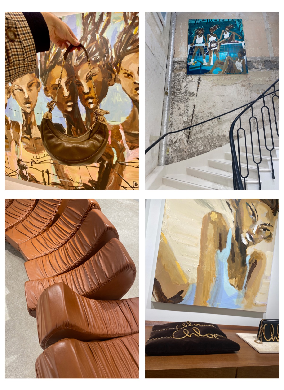 And speaking of Chloé stores in Paris, here’s what I saw at the rue de Saint-Honore boutique: the perfect marriage between retail and art. Mie Olise Kjærgaard‘s absolutely beautiful paintings are exhibited across the entire space, perfectly matching the current season.