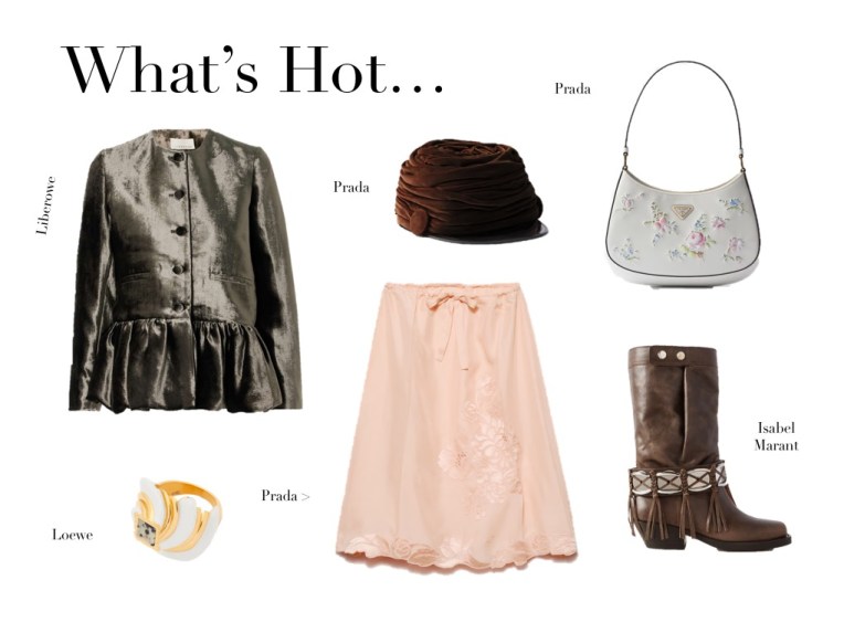 What’s Hot (14.10.24) October 14, 2024October 12, 2024 | Design & Culture by Ed Liberowe Velvet Peplum Jacket Prada Haboutai Floral Embroidered Drawstring Scallop Skirt Prada Cleo Hobo Bag Isabel Marant Ademe Embellished Fringed Leather Ankle Boots Related
