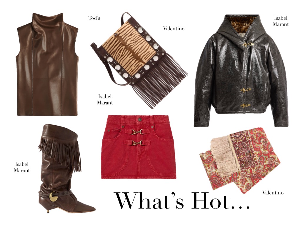 What’s Hot (9.11.24) November 9, 2024 | Design & Culture by Ed Valentino Nellcote Suede Fringe Shoulder Bag Isabel Marant Amiel Oversized Hooded Leather-trimmed Shearling Jacket Isabel Marant Paulina Embellished Denim Mini Skirt Isabel Marant Fringed Leather Knee Boots COS Sleeveless Leather Top Related