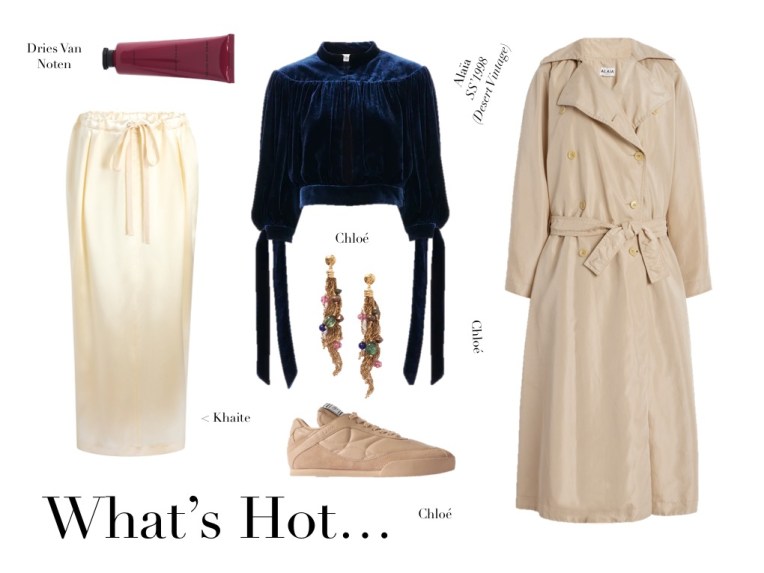 What’s Hot (2.12.24) December 2, 2024December 1, 2024 | Design & Culture by Ed Chloé Floral Dévoré Velvet Puff-Sleeve Top Chloé Kick Suede-trimmed Quilted Leather Sneakers Chloé Gold-tone Earrings Khaite Mila Wrap-effect Silk-gazar Maxi Skirt Dries Van Noten Soie Malaquais Hand Cream Co Belted Double-breasted Cotton-blend Twill Trench Coat Related