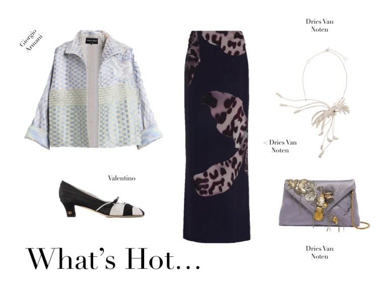 What’s Hot (14.1.25) January 14, 2025January 12, 2025 | Design & Culture by Ed Giorgio Armani Geometric Paillette Jacquard Asymmetric Double-Breasted Jacket Valentino Garavani Bowow 45 Crystal-embellished Suede-trimmed Moiré Pumps Dries Van Noten Layered Lace-trimmed Crepe Maxi Skirt Dries Van Noten Beaded Brass Necklace Dries Van Noten Embellished Cotton-gabardine Clutch Related