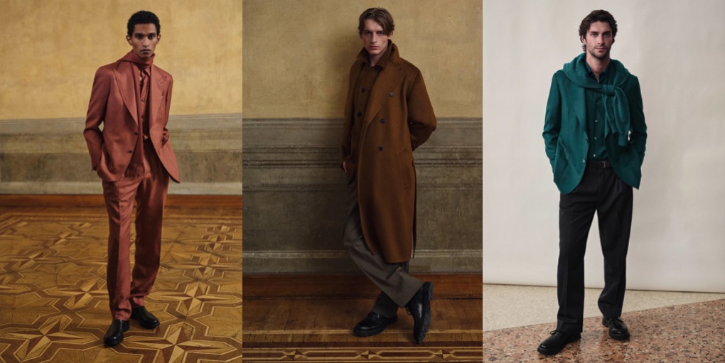 It seems to me that no one embodies the art of sprezzatura in Milan’s menswear quite like Norbert Stumpfl at Brioni. Poignant, laid-back, seductive, and undeniably luxurious, the Austrian-born designer’s vision for the Roman house ticks all the right boxes for me. The men featured in the autumn-winter 2025 lookbook are draped in sumptuous shades of ochre and burgundy, exuding irresistible chic in their cashmere coats and loosely tailored, pyjama-like suits. The thin, fringed scarves, tied nonchalantly around their necks, lend the collection an air of refined cool. Brioni is for the man who brunches at Giacomo Bistrot and dines at Il Solferino, yet never takes himself too seriously.