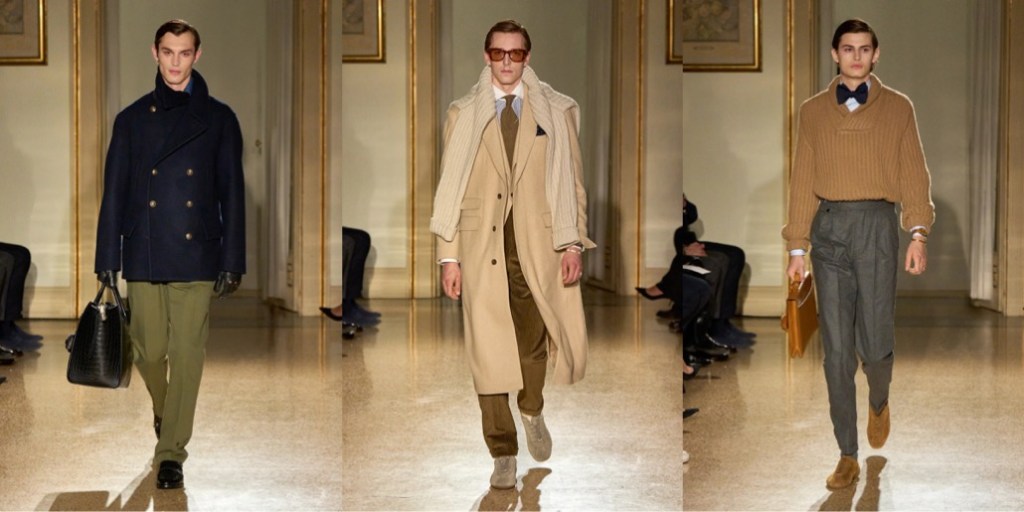 Especially when we’ve got this ultra-fine collection formal car-coats and blazers, crafted from high-end British traditional fabrics (think Melton, Donegal tweed, wool whipcord, cashmere tartan) into lighter versions – and tailored with a softer, more supple construction. Holloway is also an accessory guy: leather driving gloves are his signature, just like a proper velvet bow-tie.