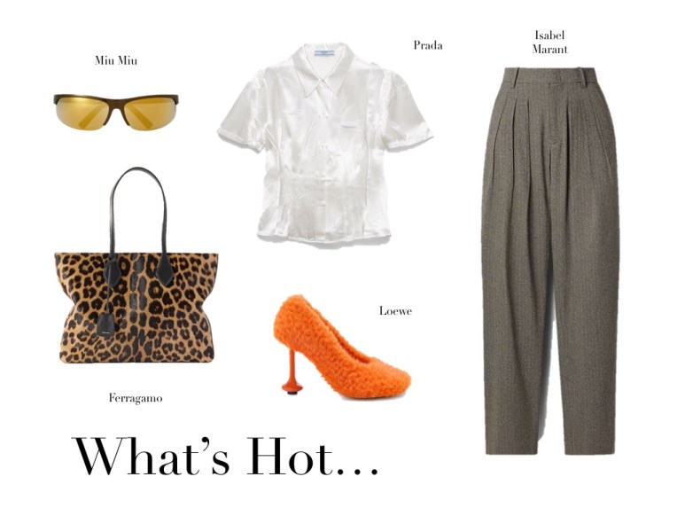 What’s Hot (25.1.25) January 25, 2025January 22, 2025 | Design & Culture by Ed GET THE LOOK: Miu Miu D-frame Acetate Sunglasses Isabel Marant Iwena Pleated Cotton-blend Tapered Pants Loewe Toy Crystal-embellished Suede Pumps Ferragamo Star Leather-trimmed Leopard-print Calf Hair Tote Related