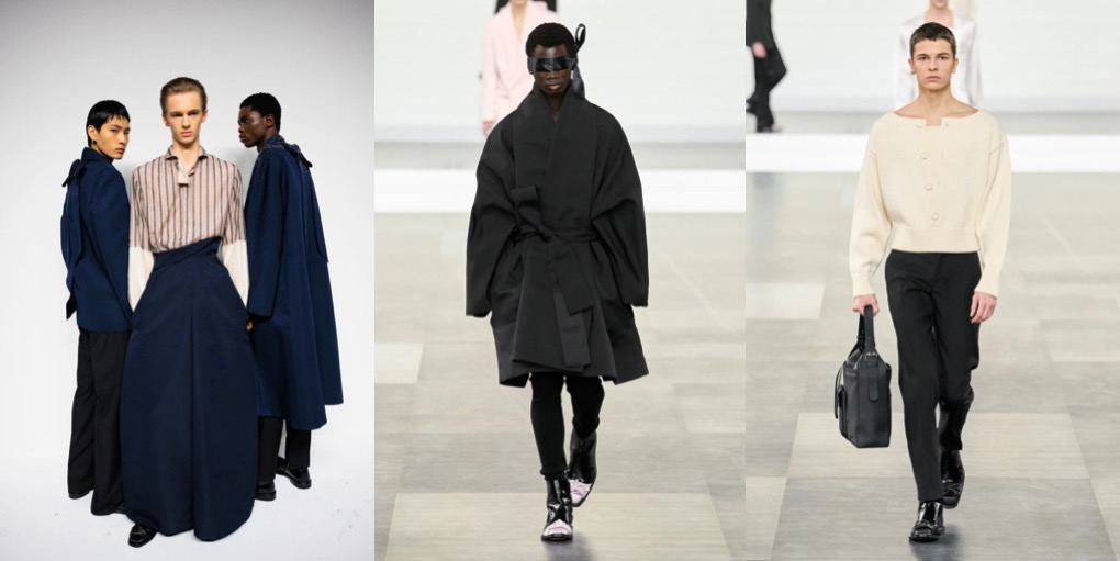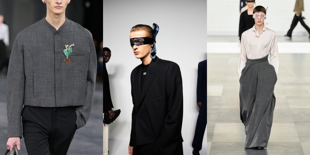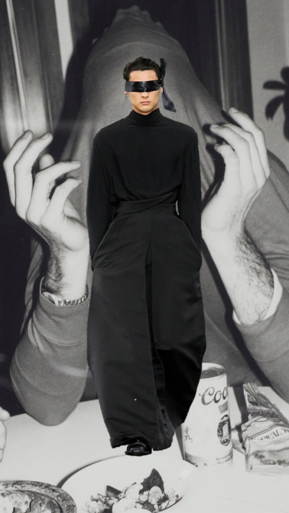 Kim Jones‘ sensational Dior Men collection is exactly what happens when a designer is unburdened from another super-demanding job (meaning Fendi, the Roman brand where the British designer just couldn’t find his rhythm). This autumn-winter 2025 menswear collection was evidently thoroughly considered and planned, like an haute couture outing. The most stunning silhouette was either a trouser nor a skirt. It was a coat, worn backward, with the collar creating a kind of asymmetric cummerbund, the tucked-in sleeves forming “pockets,” and buttons running down the back. The silk-ribbon blindfold some of the models wore gave a pinch of extra-seduction. If only Dior womenswear was this good. Maybe when – as the rumor has it – Jonathan Anderson takes helm?