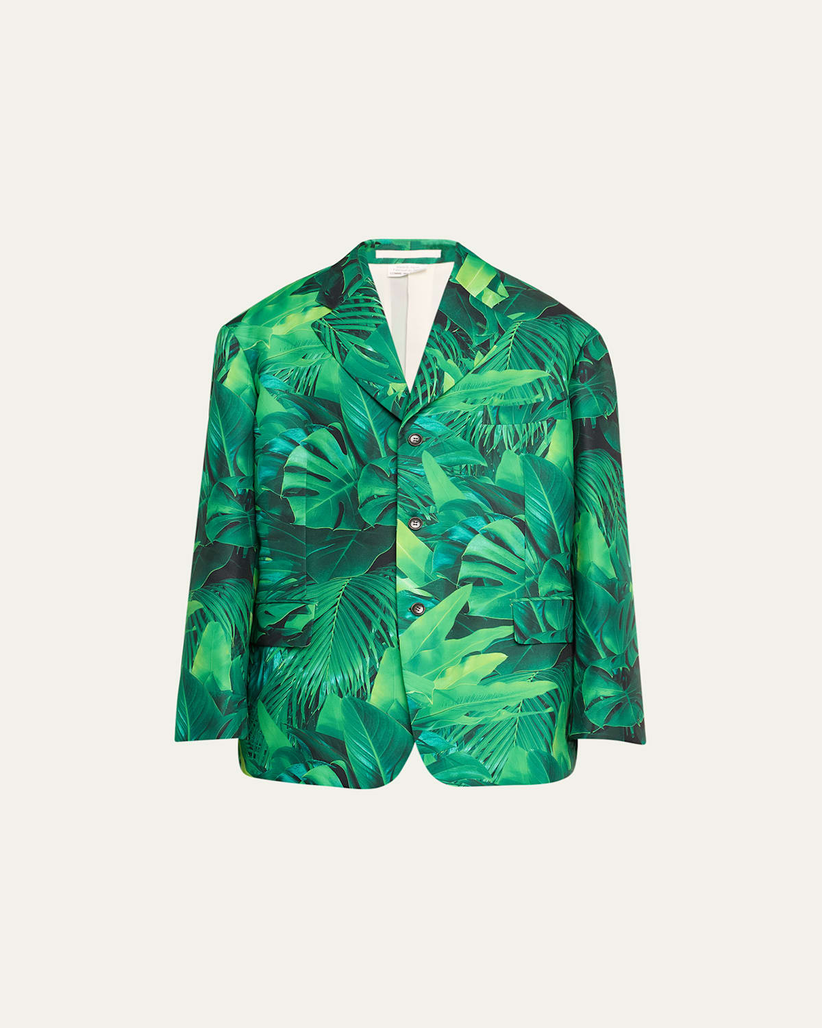Comme Des Garçons Oversized Gabardine Leaf-Print Sport Coat