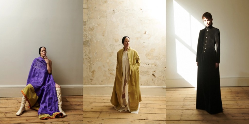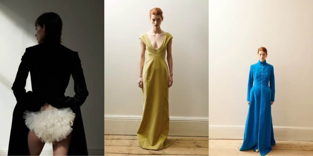 Colleen Allen is a designer that brings hope to New York Fashion Week. Her autumn-winter 2025 lookbook is a delightful blend of what she’s already recognized for – curiosity for Victorian-era garments and a certain elusive, beguiling witchiness – and a new-found sensuality seen through a witty lens. The collection is modelled by the artist Kembra Pfahler, whose famous layered imprints of her buttocks on canvas inspired Allen. “It was like a fuck you way of referencing Yves Klein and how he used to utilize the female body as a paint brush,” she said, explaining her choice of blue in this season’s blue velvet coat-dress. In general, this collection had a thing to do with “a little bit of butt,” as the designer stated. The coats have an exaggerated back cut, offering playful peekaboo moment for a bum glimpse. This extremely talented designer is channeling a new, badass, feminine energy that fashion needs – through a female gaze.