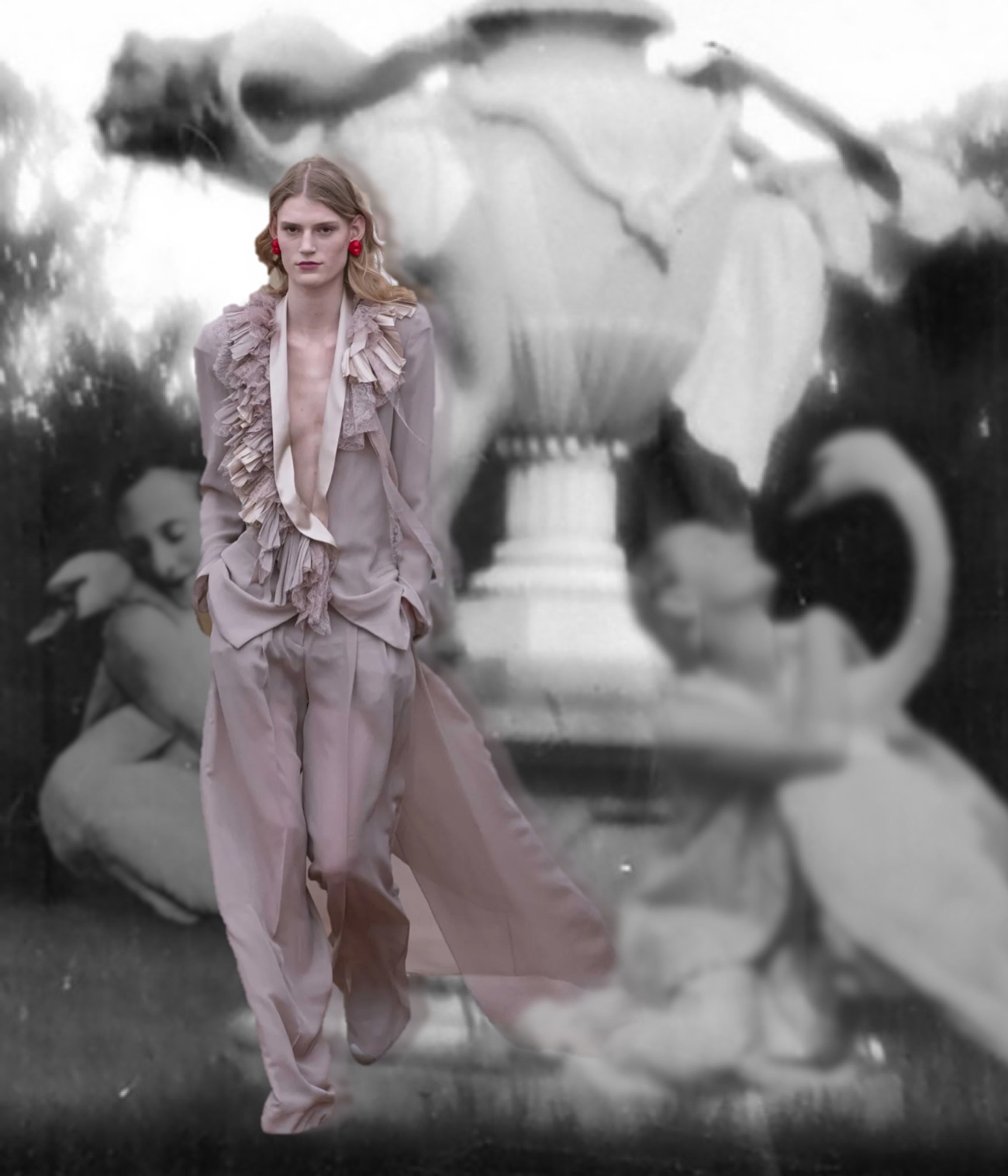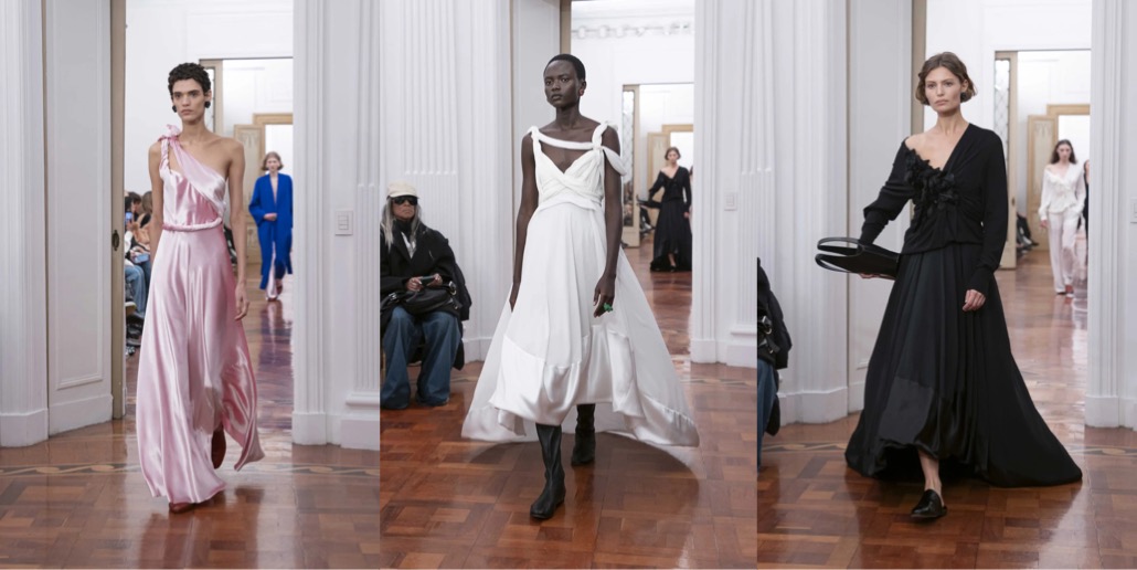 Lorenzo Serafini‘s debut collection for Alberta Ferretti wasn’t the loudest, but certainly was persuasive. “It is the big dreams that make people big. Small ones are desires. One should not be afraid to be ‘exaggerated’… at least in dreams.” Serafini used this beautiful Franca Sozzani quote in the notes for a show that represented, for him, the actualization of a very big dream: his new role at the Milan-based brand founded in 1981. The Sozzani factor was thanks to the late great Vogue Italia’s friendship with Ferretti, and her inspirational status for Serafini. Alongside the founder, Sozzani acted as the spiritual muse for this collection. You could actually imagine these dreamy, billow-y gowns and oversized suits on the pages of Franca’s Vogue, maybe photographed by Sarah Moon or Paolo Roversi. Serafini also delivered some of the most fascinating evening numbers we’ve seen this season – especially the unobvious-looking draped dresses that had a little of Romeo Gigli in them.