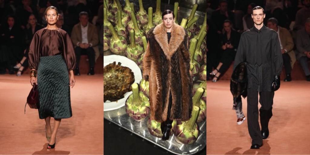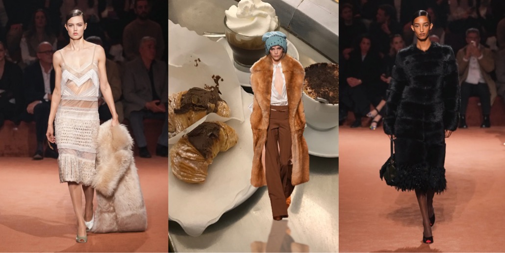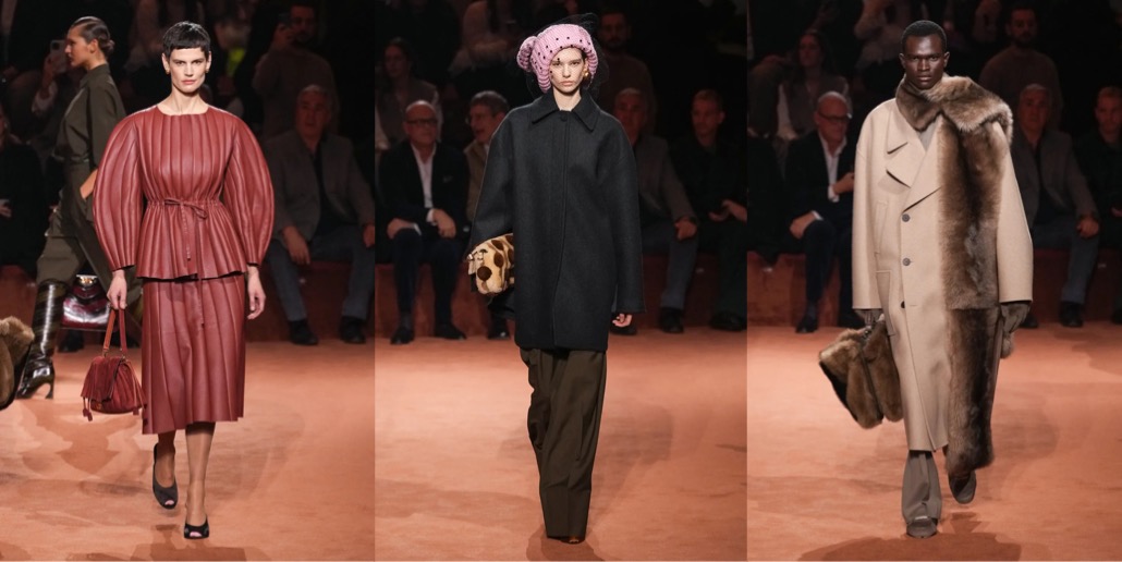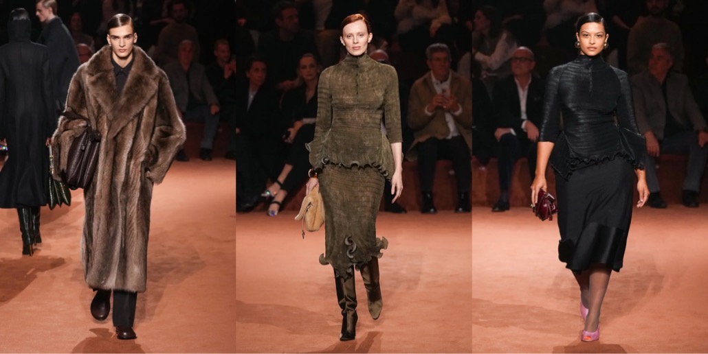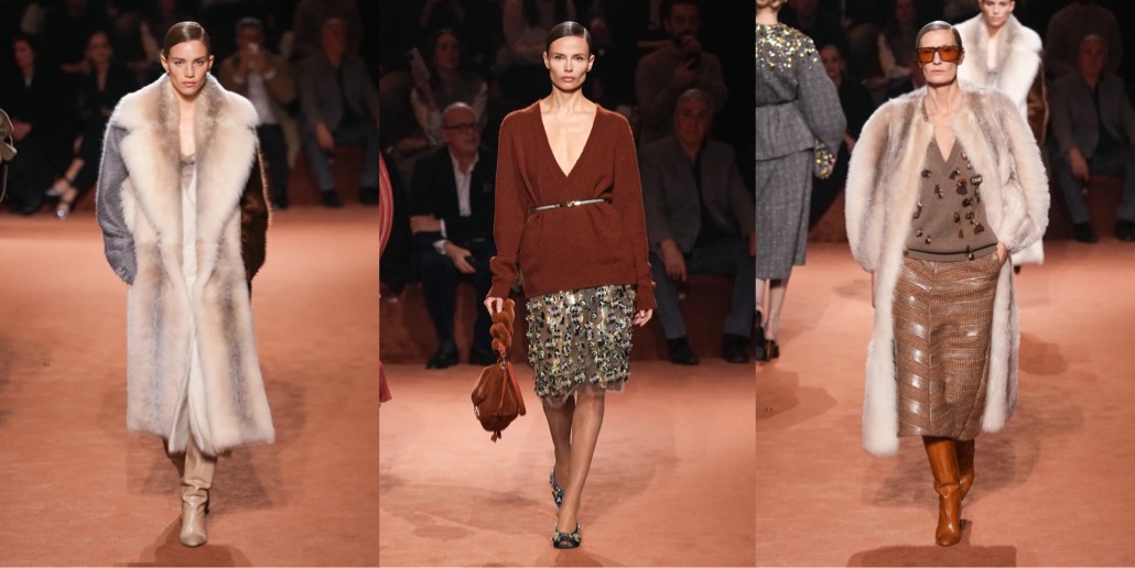 Fendi celebrated its centennial in the only right way: with Silvia Venturini Fendi as the main woman at the helm. And after yesterday’s show, I hope she will stay with the brand’s womenswear for seasons to come. The collection just felt really, really good. It was chic and substantial, full of breath-taking craftsmanship and clothes (and accessories – like the netted beanies!) that are actually appealing. And there was a sense of nonchalant fun, reminiscing the spirit of Karl Lagerfeld (and something that was painfully absent throughout Kim Jones’ emotionless tenure). To mark the fact that fur, while central to Fendi, has always been just part of its offer, Venturini Fendi proposed collarless coats and dresses that featured furry facades (in either mohair or shearling) that looked like the reveres of these garments but were in fact removable stoles. Most of the spotlight-stealing fur coats were made in shearling. The red spotted dress was a particularly bravura example of this house’s craft.