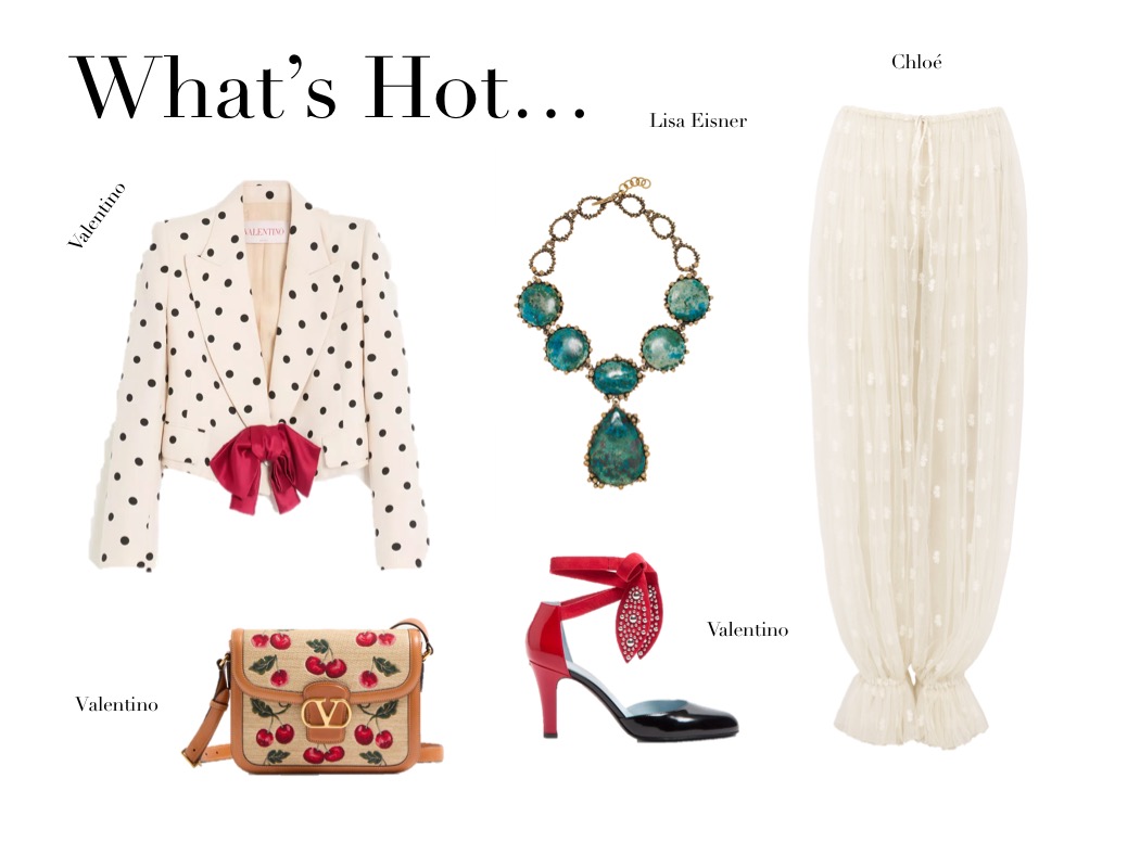 What’s Hot (5.3.25) March 5, 2025March 1, 2025 | Design & Culture by Ed Valentino Garavani 9to5 Leather-trimmed Canvas-jacquard Shoulder Bag Valentino Garavani Ruffle Bib Organza Polka Dot Print Blouse Valentino Garavani Polka-dot Silk-crepe Wide-leg Pants Valentino Garavani Bowow 45 Bow-embellished Leather Pumps Related