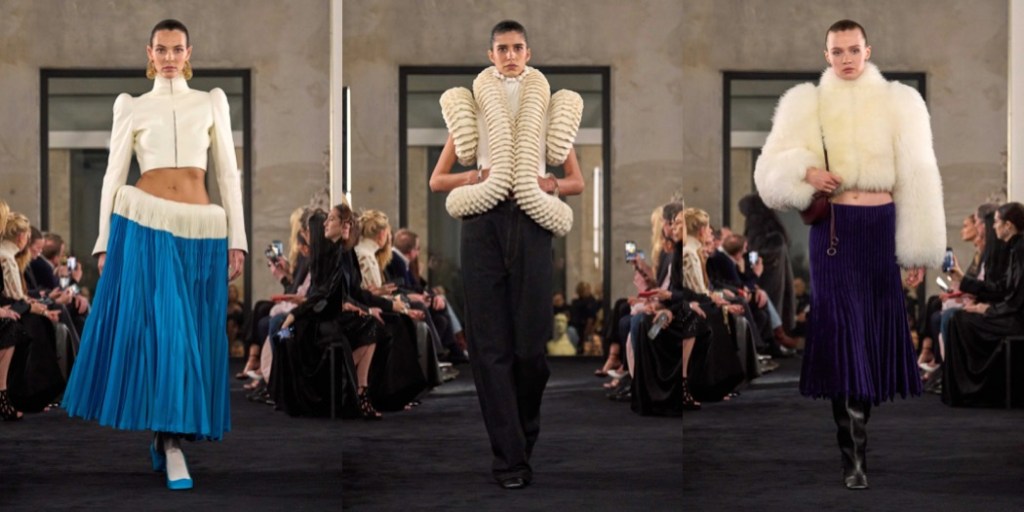Pieter Mulier,contemporary creative director of Alaïa, has proved many times he has the artisanal know-how that Monsieur Azzedine would appreciate. But this season, something went off course. The Belgian designer tried hard to reinvent the wheel, but the result felt forced and unresolved – rather than innovative. It’s difficult to imagine a woman – not a runway model – radiate with real confidence in those tubular skirts and hyper-padded jackets. These technical novelties made the collection read as complicated and demanding – but not as in intellectual, Prada way, or conceptual à la Comme Des Garçons, but as in difficult to wear. The massive, floor-sweeping coat in the end didn’t help.