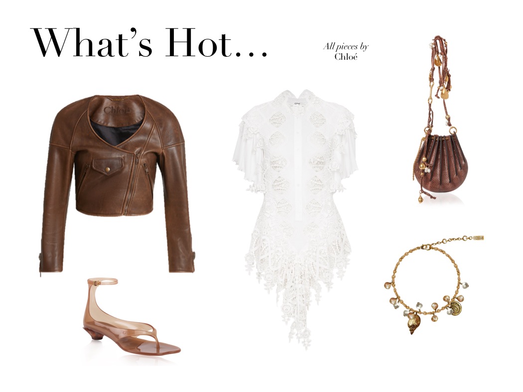 What’s Hot (10.3.25) March 10, 2025 | Design & Culture by Ed Chloé Fringed Leather Jacket Chloé Tiered Lace-trimmed Silk-chiffon Blouse Chloé Gold-tone And Resin Necklace Chloé Twisted Shell Embellished Leather Tote Related