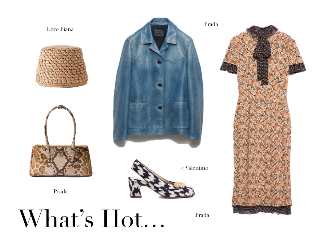 What’s Hot (4.5.25) May 4, 2025 | Design & Culture by Ed GET THE LOOK: Prada Floral Georgette & Polka-Dot Chiffon Layered Midi Dress with Bow COS Leather Aviator Jacket Gianvito Rossi Tweed Mary Jane Ballet Flats Loro Piana Jasmine Raffia Bucket Hat Khaite Cate Python-Embossed Leather Top-Handle Bag Related