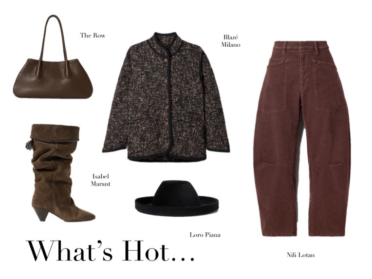 What’s Hot (22.7.25) July 22, 2025 | Design & Culture by Ed GET THE LOOK: BLAZÉ Milano Katara Boucle Jacket Nili Lotan Shon Cotton-blend Corduroy Tapered Pants Isabel Marant Elita Tasseled Leather-trimmed Suede Knee Boots The Row Falken Cotton And Wool-blend Bucket Hat The Row India Leather Tote Related