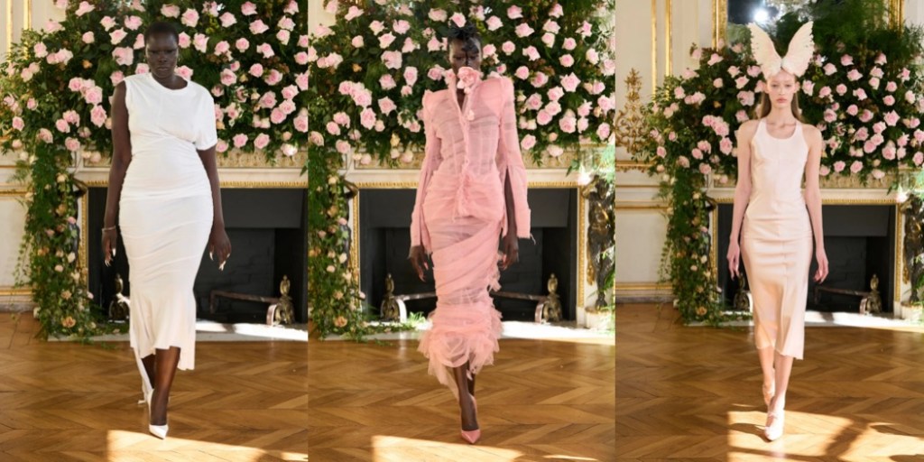 Being different from the norm has always been fashion’s prerogative, especially for designers like Alexander McQueen, John Galliano, and Rick Owens. The duo behind Matières Fécales aim to continue that legacy by challenging conventional beauty standards: not only with their looks, but the multi-generational, diverse characters they cast in their shows. They unveiled their remarkable Spring–Summer 2026 collection at Place Vendôme – where else, if not at the very epitome of Parisian vanity? – a lineup filled with frayed tweeds à la Chanel, strong-shouldered riffs on Dior’s Bar jacket, and couture-inflected, corseted gowns that, from one angle, objectify the wearer to extremes, and from another, become a bulletproof shelter, an armor of sorts.