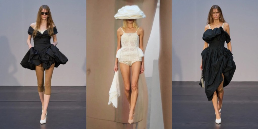 The collection’s title is not only an ode to Magda’s creative sanctuary in the heart of Warsaw but also a reference to Paulina Ołowska’s painting The Studio, which depicts a woman painter inspired not only by another woman’s body but also by her character. The warmth, vulnerability, and understanding conveyed through the female gaze – so poignantly captured by the Polish painter who sat front row at the show – set the tone for the collection’s outlook on femininity, reveling in all its unexpected twists and turns.