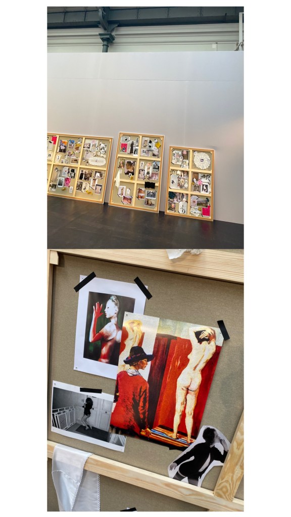 After the fashion show came a theatrical shift in setting – from runway to studio. For this occasion, I had the utmost pleasure of creating six large-format moodboards offering a rare glimpse into the creative process behind the collection, while simultaneously paying homage to Ołowska’s practice. In her extensive oeuvre, the artist often exhibited personal boards of inspiration as a form of self-retrospection – an act mirrored in Magda’s tribute.