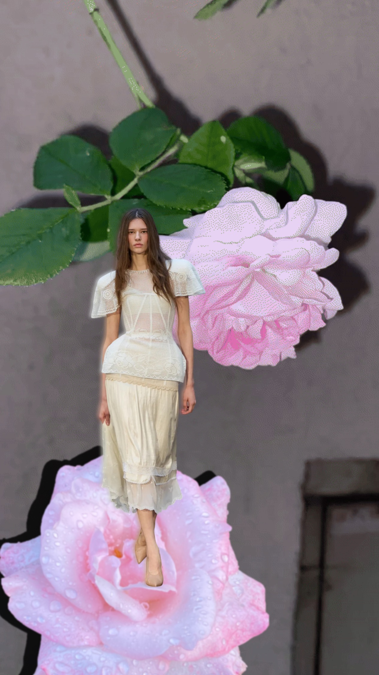 After the fashion show came a theatrical shift in setting – from runway to studio. For this occasion, I had the utmost pleasure of creating six large-format moodboards offering a rare glimpse into the creative process behind the collection, while simultaneously paying homage to Ołowska’s practice. In her extensive oeuvre, the artist often exhibited personal boards of inspiration as a form of self-retrospection – an act mirrored in Magda’s tribute.