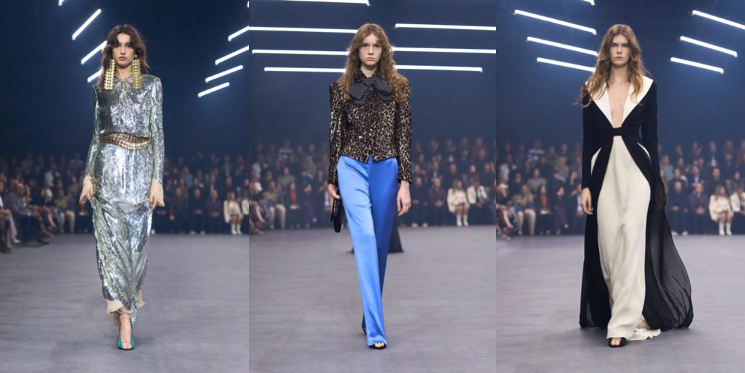 The first look – a gathered peacock-blue blouse tied with bows at the collar and hem, paired with chartreuse satin pants whose hems hugged the heels of the model’s shoes – felt retro-tinged yet somehow modern. Equally striking were a marvelous zebra-printed blouse and a black velvet evening dress adorned with a single pink feather at the V-neck. Another standout was a pleated orange top worn with a simple pair of jeans: so innocent, effortless, and spontaneous. Lana Del Rey sat front row at the show with her family: it all made sense. They all lived happily ever after.