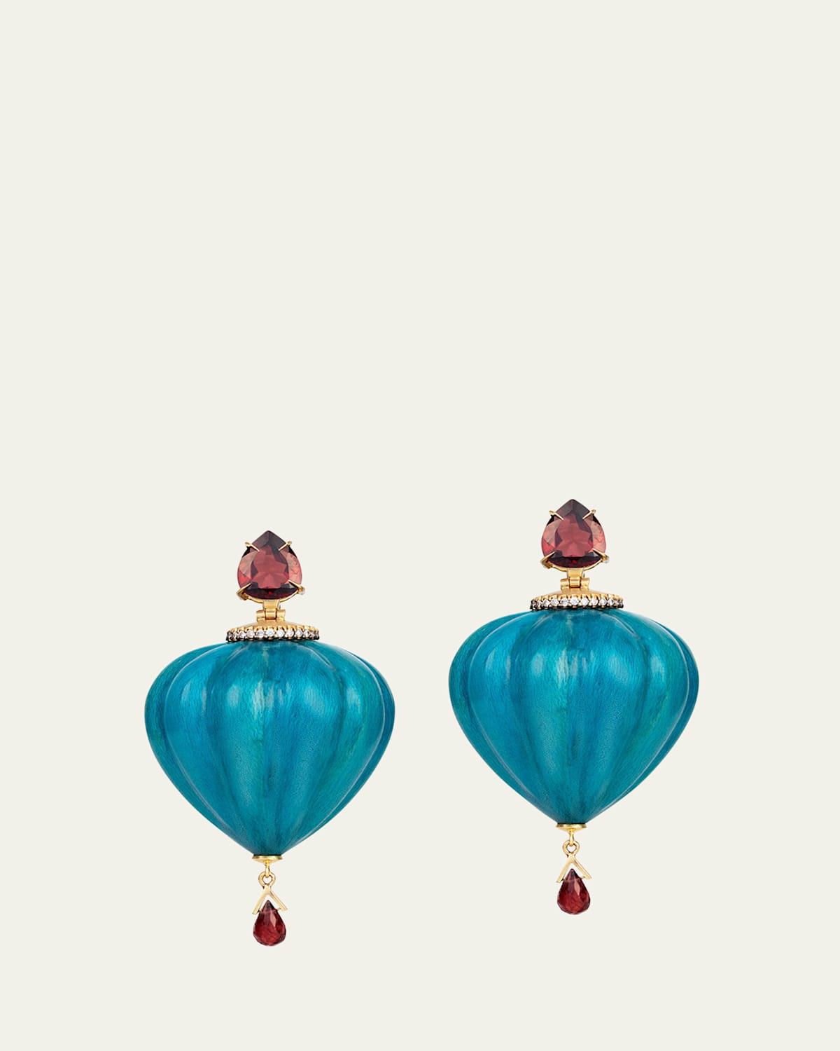 Silvia Furmanovich Turquoise Lacquer Marquetry Drop Earrings with Diamonds and Garnets
