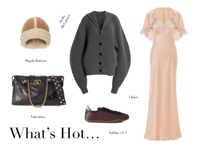 What’s Hot (23.10.25) October 23, 2025October 22, 2025 | Design & Culture by Ed GET THE LOOK: adidas Originals x Y-3 Tokyo Leather-trimmed Satin Sneakers Stella McCartney Hooded Ribbed Recycled-cashmere And Wool-blend Cardigan Valentino Garavani Growl Medium Embellished Leather Shoulder Bag Chloé Corded Lace-trimmed Silk-satin Midi Dress Related