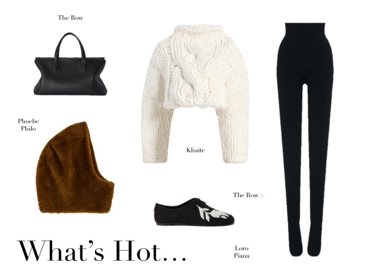 What’s Hot (21.11.25) November 21, 2025 | Design & Culture by Ed GET THE LOOK: The Row Mimi Stretch-knit Tights KHAITE Darcy Merino Wool Sweater Loro Piana Floaty Nubuck Loafers The Row Alger Textured-leather Shoulder Bag Pologeorgis Shearling Trapper Hat with Leather Chin Strap Related