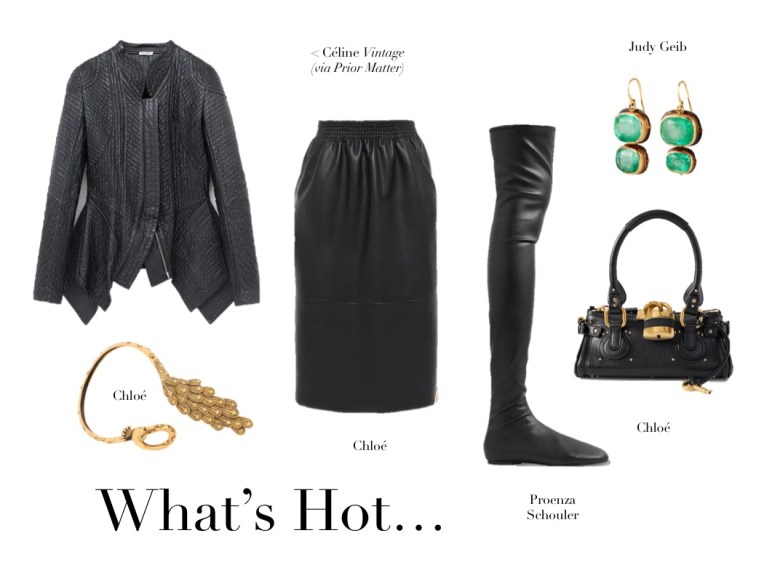 What’s Hot (21.12.25) December 21, 2025 | Design & Culture by Ed GET THE LOOK: Proenza Schouler Tee Over-the-knee Boots SAINT LAURENT Leather Skirt Chloé Paddington Embellished Leather Tote Chloé Peacock Gold-tone Choker Judy Geib Yellow Gold Cushion Cut Colombian Emerald Double Drop Earrings MCQUEEN Paneled Leather And Ribbed Cotton-blend Jacket Related