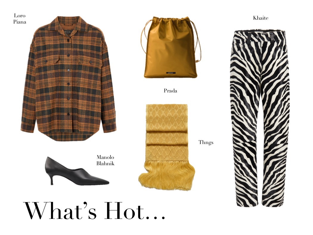What’s Hot (18.1.26) January 18, 2026 | Design & Culture by Ed GET THE LOOK: Loro Piana Darby Checked Wool And Cashmere-blend Shirt Manolo Blahnik Kietta 70 Leather Pumps Mary Katrantzou Bryne Zebra-print Stretch-jersey Wide-leg Pants JW Anderson Fringed Jacquard-knit Scarf Gohar World Demi Bow-embellished Satin Baguette Pouch Related