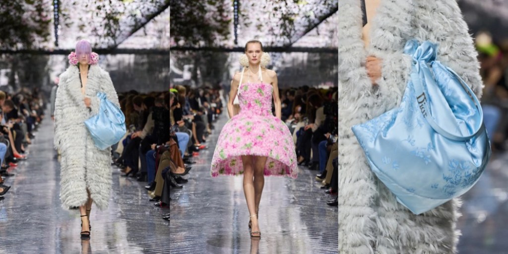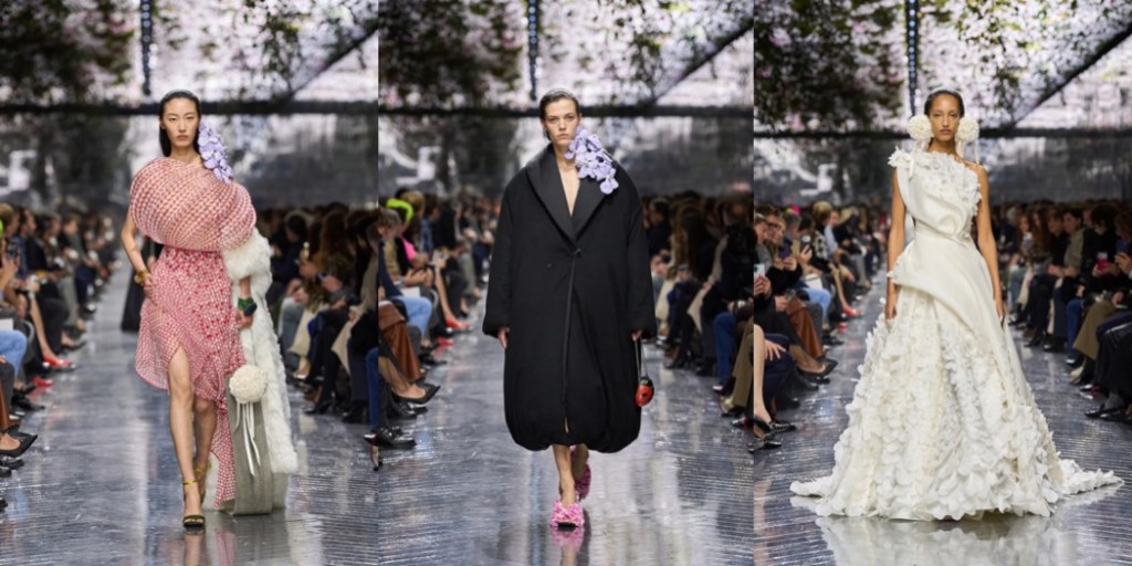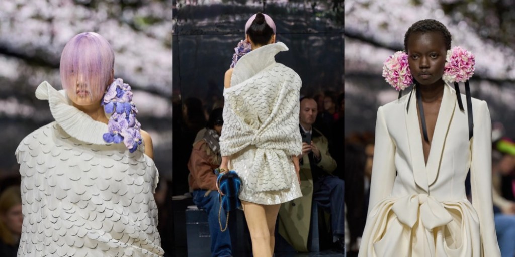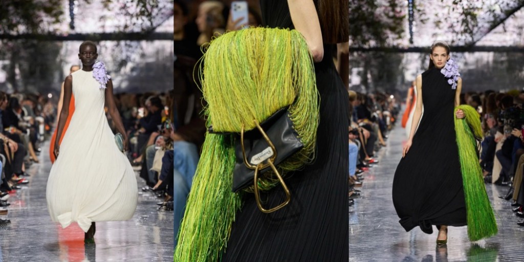 Jonathan Anderson’s Dior collection had been in the making for over six months, and it shows in every single detail. Everything is imbued with passionate love for craft, art, and… FASHION. John Galliano not only blessed the project, but in a way initiated its birth with a cyclamen bouquet he gifted Anderson at the very beginning of his tenure at the house. The fragile purple flowers – symbols of lasting feelings, sincere affection, and tender love – were not only present in the show’s scenography, but were eternalized by Jean-Pierre Ollier’s atelier, which created thousands of handmade, hand-painted silk flowers. These blooms adorned the collection’s hero accessories: oversized brooches, bomb-shaped earrings, and more.