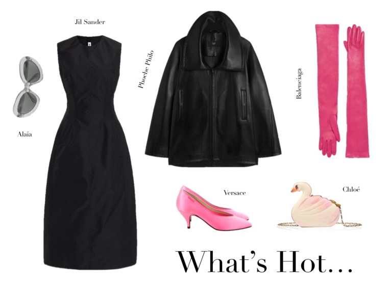 What’s Hot (28.2.26) February 28, 2026 | Design & Culture by Ed GET THE LOOK: Alaïa Round-frame Acetate Sunglasses Calvin Klein Collection Anita Off-the-shoulder Wool-blend Dress Theory Leather Jacket Valentino Garavani Bowow 45 Crystal-embellished Metallic Suede-trimmed Moiré Pumps Related