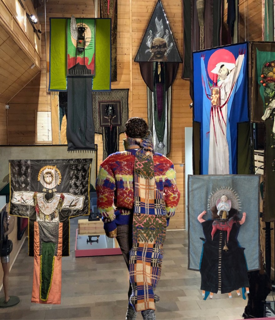 Dries has long been a master of unexpected combinations, and Julian proves himself an A+ student, treating his affection for eclecticism in an assemblage-like manner (Władysław Hasior’s work comes to my mind). Worth noting was a pair of collegiate jackets stitched seemingly at random with embroidered ribbons, in the way a young girl might scribble across her jeans. There’s something equally profound and joyfully carefree about the designer’s approach to personal style.