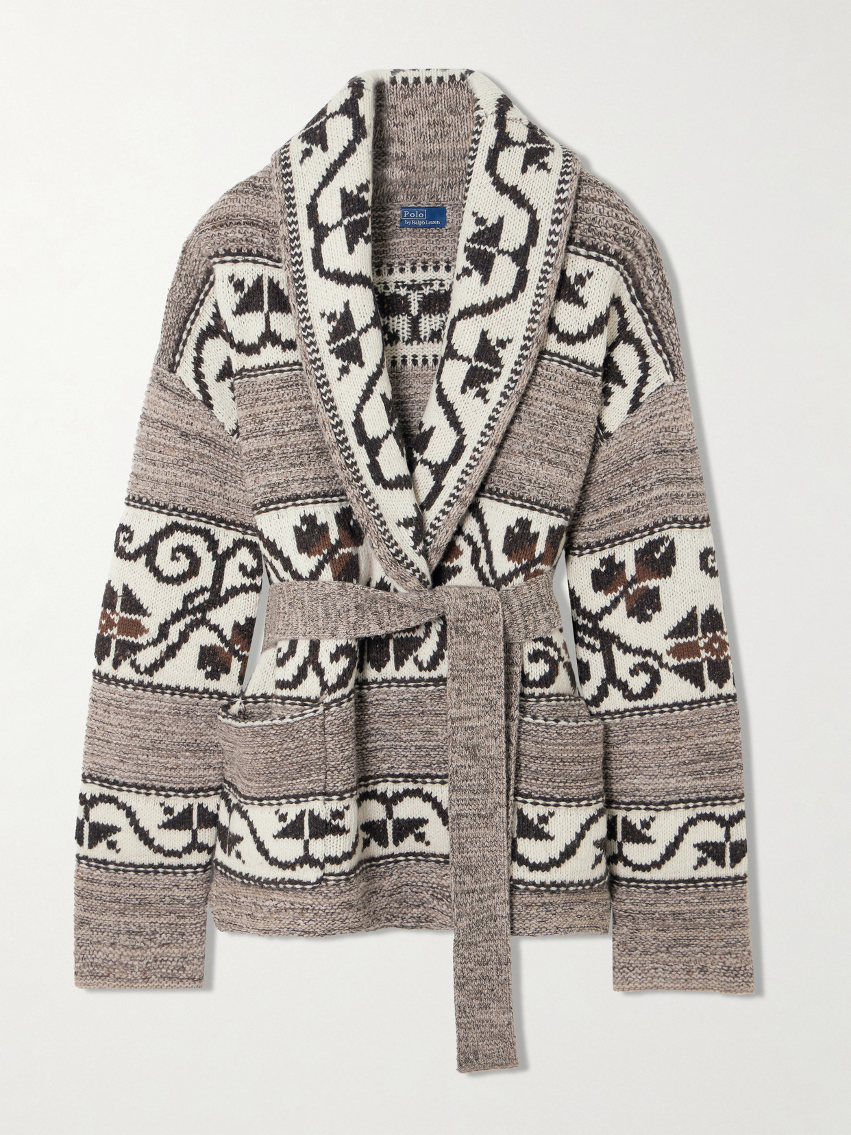 Polo Ralph Lauren Belted Jacquard-knit Wool-blend Cardigan
