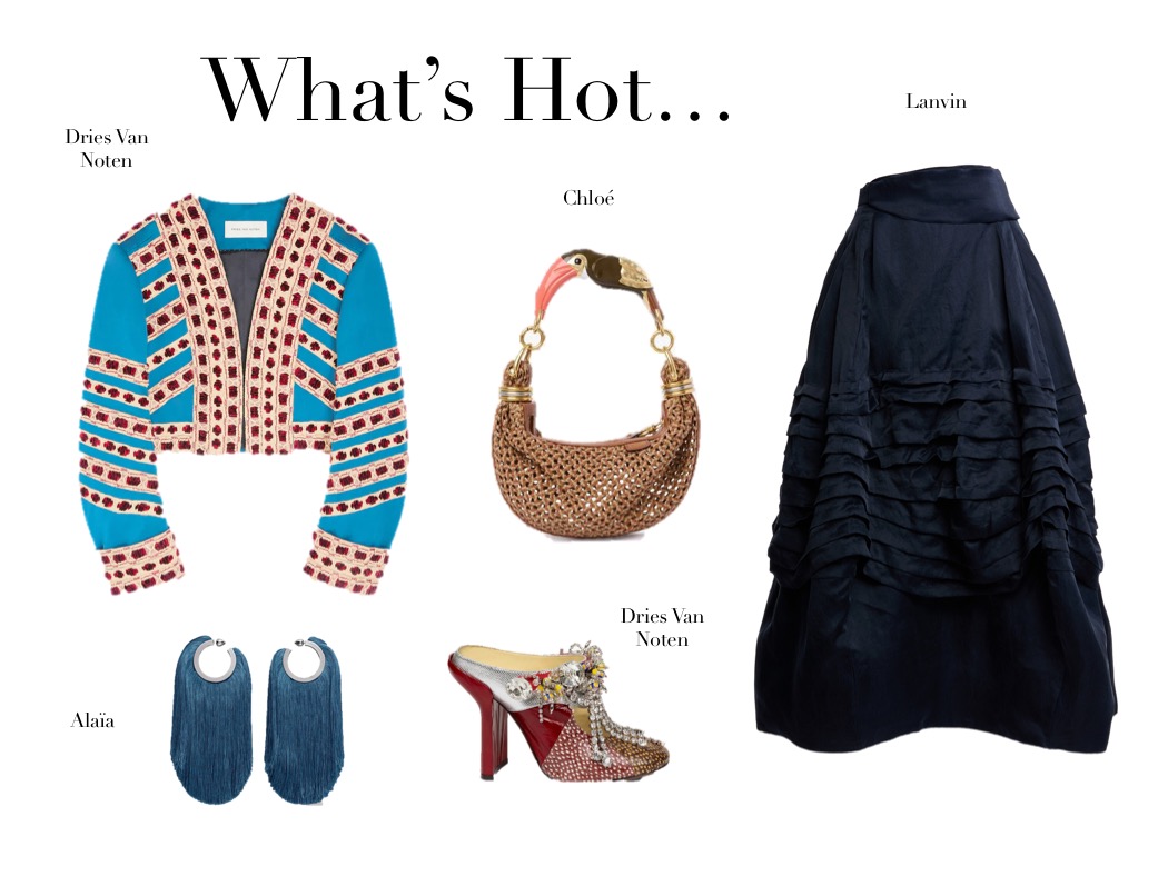 What’s Hot (7.4.26) April 7, 2026 | Design & Culture by Ed GET THE LOOK: Chloé Bracelet Embellished Textured-leather Shoulder Bag Alaïa Fringed Silver-tone Earrings BLAZÉ Milano Riviera Cotton-blend Tweed Jacket Lanvin Asymmetric Velvet Skirt Dries Van Noten Eel-effect Leather Sandals Related