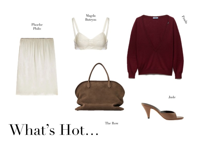 What’s Hot (19.4.26) April 19, 2026 | Design & Culture by Ed GET THE LOOK: JUDE Haze Leather Mules SASUPHI Ribbed Cashmere Cardigan AGENT PROVOCATEUR Alysia Bow-detailed Embroidered Tulle Underwired Bra SHUSHU/TONG Bow-embellished Satin-trimmed Lace Midi Skirt The Row Faye Textured-leather Tote Related