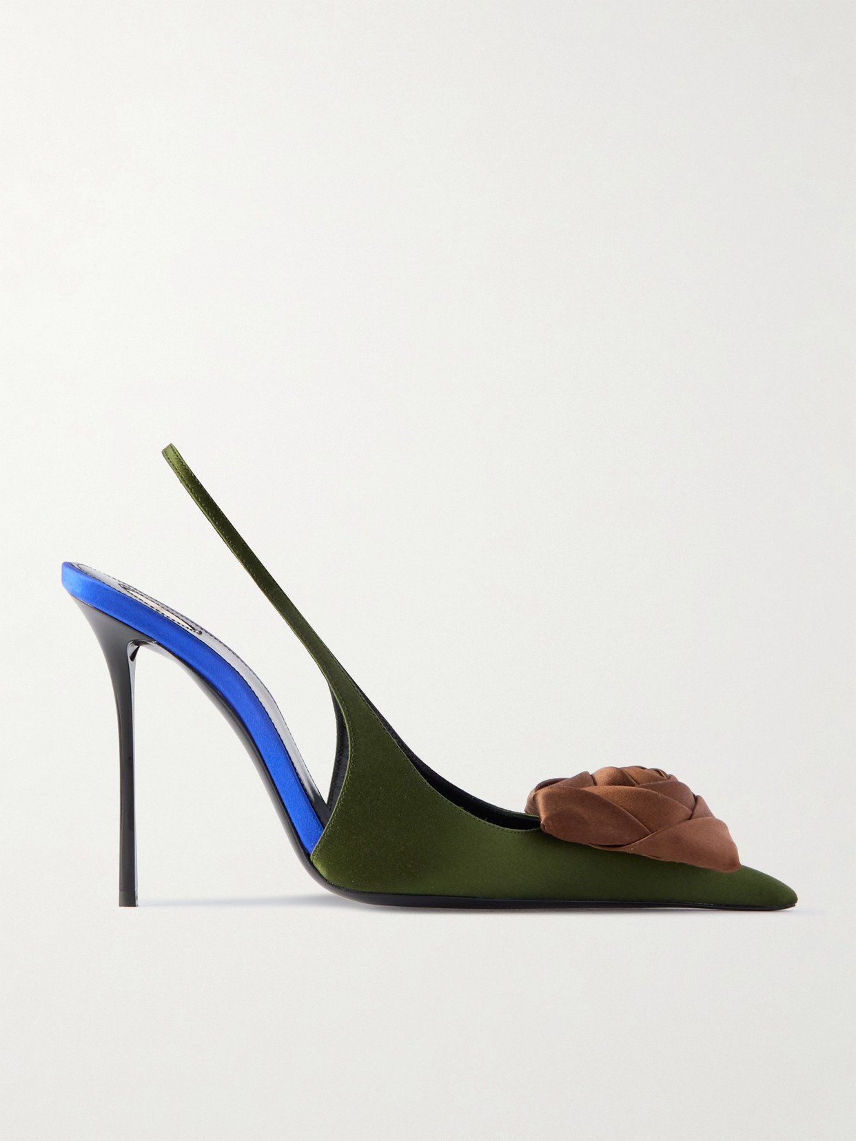 SAINT LAURENT Amalia Appliquéd Satin Slingback Sandals