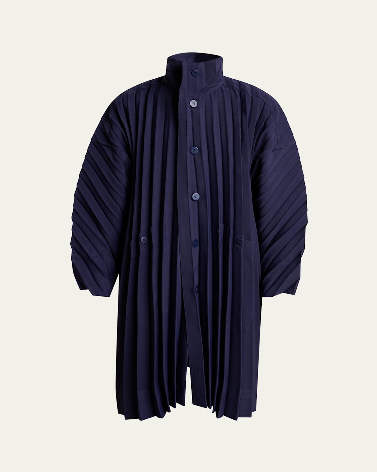 Issey Miyake Navy Edge Pleated Overcoat