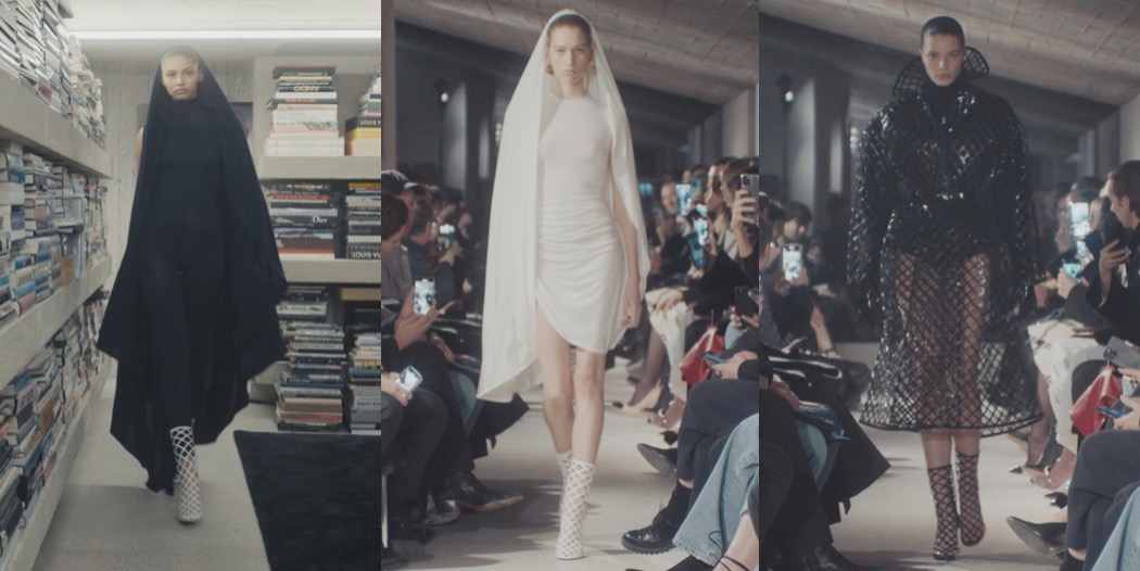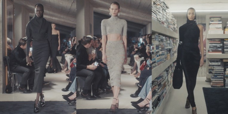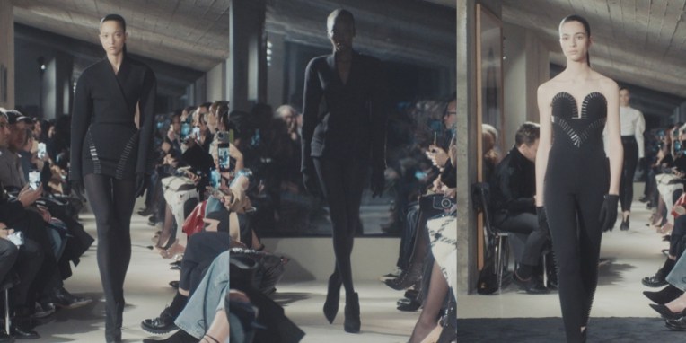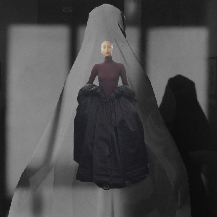 But where was the Belgian identity of Mulier beginning to be apparent? “The tailoring is very minimal. I told the team, I want it to be as minimal as possible, with the maximum effect. But it needs to be sensual, where all the drapes are circles,” he said. “There’s a white dress where we just cut it, draped, attached it – and that was it. So on that level it’s very Antwerp.Very simple.” The white dress, with its scarf over the head, serendipitously evoked the drape of the North African hoods Alaïa often referenced. But there was surely the hint of other Belgian street vibes going on. There was another kind of bomber-hoodie and a distinct echo of an army-surplus parka; then, Mulier’s choice of faded denim rather than Alaïa’s classic rigid version. Moving toward evening, Mulier’s drapes in black cotton were whipped around the body in a dynamic caught between sophistication and romance. Back views mattered: one dress had a low-down half-moon cutout that reverbed sexily from the showstopper Mulier sent out last season. He is not one to rush, but nevertheless, in his logical, emotional Belgian manner of doing things, Mulier is gradually putting his own stamp on the brand. Maybe this collection wasn’t as ferocious and bold as his first line-ups for the brand, but it certainly was the most emotionally-charged.