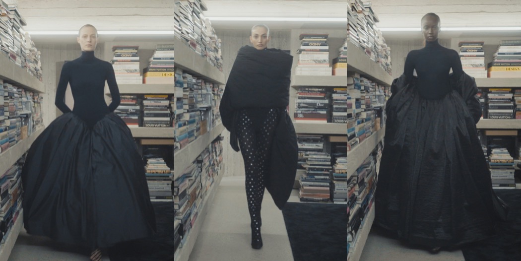 Azzedine Alaïa used to present his collections on 7 Rue de Moussy in Paris, the legendary address which wasn’t only the studio and flagship Alaïa store, but also his home. After the shows – or even on regular days – he invited his guests, from friends to models, to his kitchen, where he served his favorite dishes. This feeling of family-like community was fundamental for the designer and his independent brand. For autumn-winter 2023, Pieter Mulier took that notion to heart, and held his latest fashion show in his and his partner’s (Matthieu Blazy, Bottega Veneta’s creative director) apartment in Antwerp. The group of guests was small: a pack of fashion’s finest critics, the brand’s muses (like Tina Kunakey) and Mulier’s friends (think Raf Simons, Gaia Repossi and Dries Van Noten). The 1972 Brutalist landmark home was a fitting backdrop for the designer’s fourth collection for the brand: sophisticated, somber, very Antwerp. With that gesture, Mulier wanted “to share something of who I am” by pulling Alaïa’s culture onto his own territory. “It’s actually very simple. I didn’t want to do a big show – I didn’t want cold, distant glamour. I want to do something very intimate, small as Azzedine liked it,” he explained. His models had performed their long-leggedy Alaïa strides around his apartment in a collection that showed, in close-up, how the clothes fit to the body (rounded in the shoulder, wrapped, draped). The architecture, and the quality of the Flemish light has an effect on how Mulier sees and shapes his design, he said. “We work here on the beginning of every collection on the ground floor studio with the Alaïa team”, he revealed. “When I start, I always work in the kitchen. And when I’m in the kitchen, I look up to the cathedral, over there.” The conversation with his surroundings began a pursuit of a sculpted roundness, he said. “In our house, everything is geometric. In Alaia, everything is about the two extremes of masculine and feminine, and basically our house is very masculine. You put a feminine silhouette in it and it changes completely. Everything was sculpted on the body so everything is round; all the drapes are cut in circles.” Rounded shoulders, sculpted torso, narrowed hips, elongated silhouette: the beginning, in dense immaculately-fitted dark brown jersey, introduced it. There were bodysuits, jackets, bustiers, and flipped-out skating skirts. Eyes zoomed in to figure out the lines of glinting silver that were running down the backs of sleeves and undulating over hips. They were conceptual ‘pins’ – part homage to the dressmaking and fitting process, part perverse play on piercing; sharpness versus softness. Also a nod to a dress Alaïa once made.