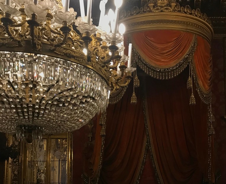 Michele has often built on the tension and vitality of the past to write his own version of the present. “Clothes are mediums, strata of languages,” he said. “Today, ‘making fashion’ doesn’t mean just being a tailor, or chronicling just a one-dimensional narration. Putting together a collection has to do with talking about your idea of the world, because fashion is deeply connected to life and to humanity. Fashion isn’t just a hieroglyph that only élites can understand. It’s about life, it speaks a multitude of idioms, it’s like a huge choir from which nobody has to be excluded. It’s like being at sea, in the ocean, and casting out someone or something is not being fair to the complexity of life.” The designer’s journey this season manifested in a show intended “as a rave,” he explained, where his skills as a costume designer were boosted by the theatricality exuded by the location. “I thought the castle shouldn’t be kept shrouded in silence, but had to be lived and celebrated as it probably was when it was built, a sort of California, the Silicon Valley of the time.” Under a serendipitous full moon, his constellation of characters paraded around the fortress, lit by projections of stars and galaxies. While the idea of cosmogony was only tangentially translated into actual shapes or decorations, the designer’s recurrent theme of metamorphosis was hinted at through unobtrusive prosthetic insertions in some dresses, and also by an unrelenting, flowing panoply of divergences. Chatelaines and go-go girls, demure bourgeois ladies and spectacular nocturnal creatures, long-limbed lovers of bondage sheathed in thigh-high, laced-up stiletto-boots and romantic heroïnes swathed in yards of velvet—it was a feast of coherent discordances, tied together by historical references (portrait collars, plissé gorgets, crusaders’ capes, trains, and medieval crinolines) and by the “incendiary shimmer,” as he called it, of luminous textures under the light. “Women have often worn constellations on their bodies,” Michele said in a sort of conceptual pirouette. “Just think of Marilyn Monroe’s famous last dress studded with crystals; she looked like the beautiful tail of an impalpable comet.” What comes around goes around, but no one performs past-to-present magic quite like Michele.